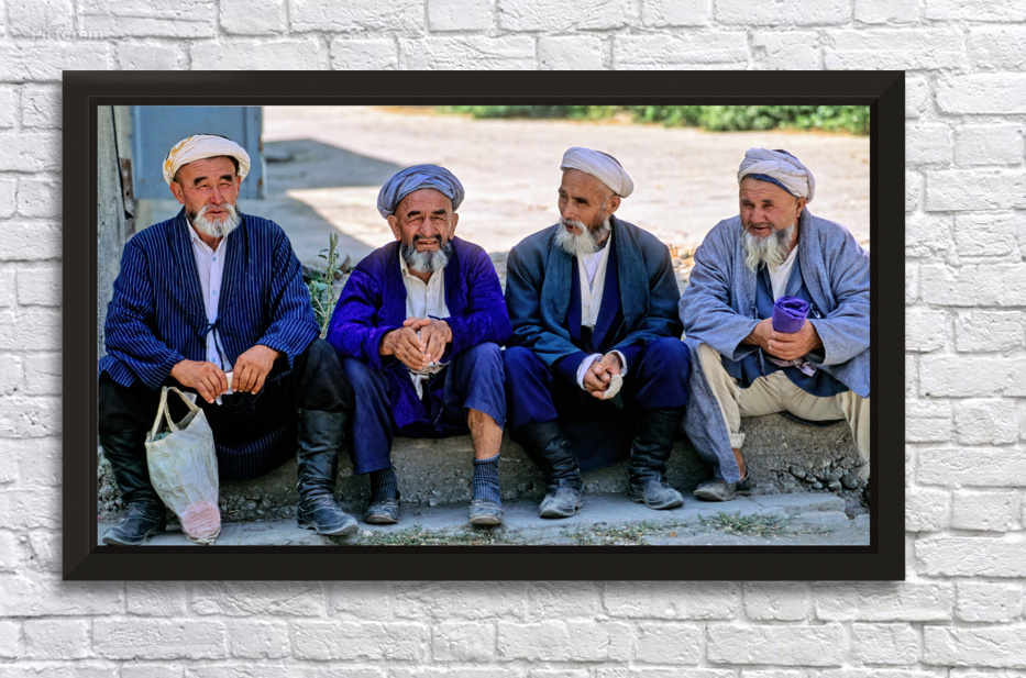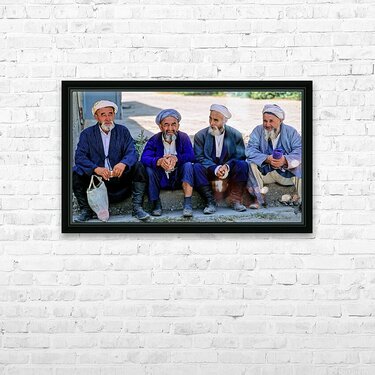 "Portrait of wise men sitting together in Samarkand" in a framed print.