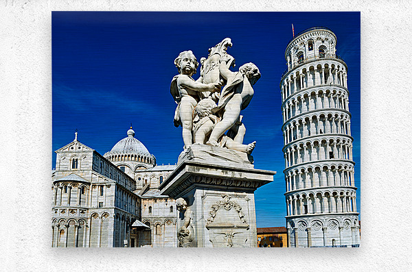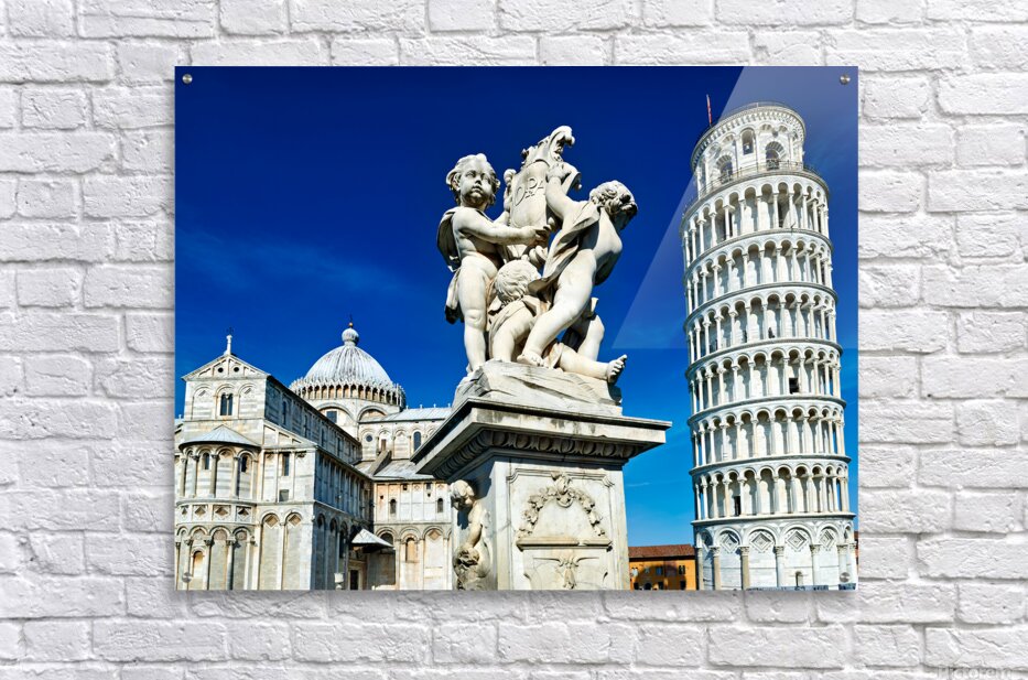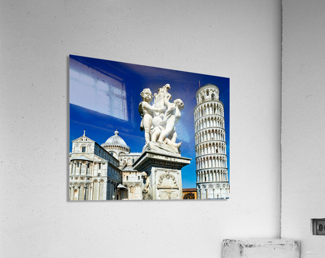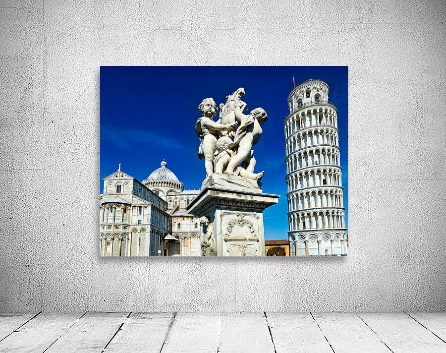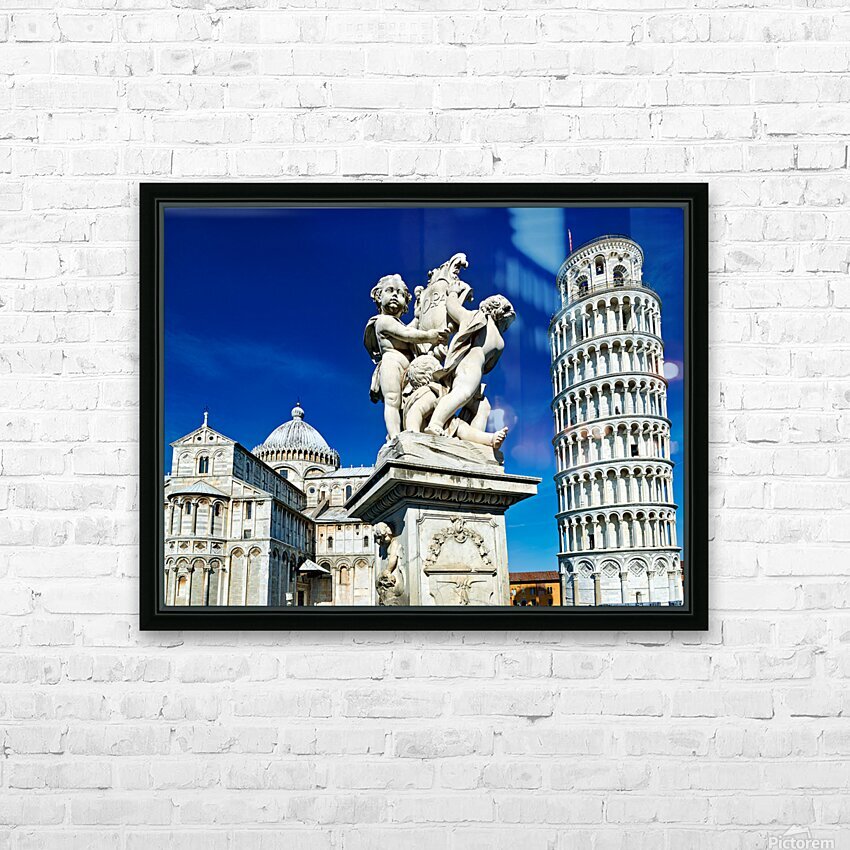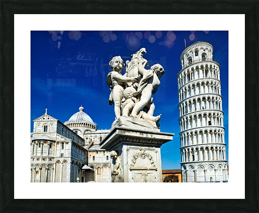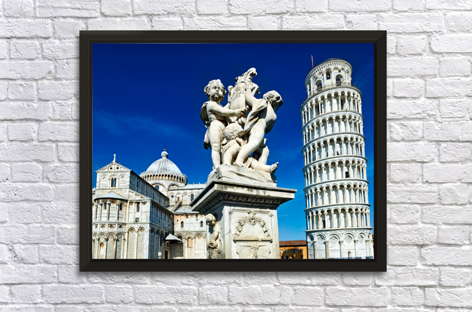 "Iconic Leaning Tower and Fontana dei Putti in Pisa" in a framed print.