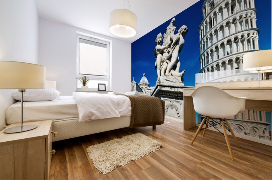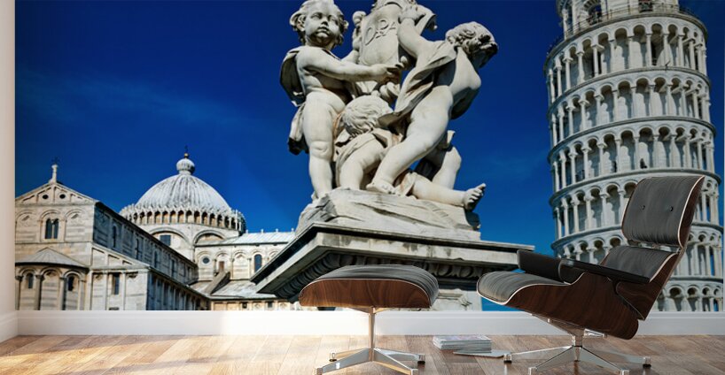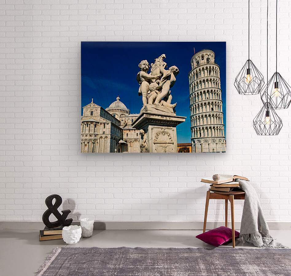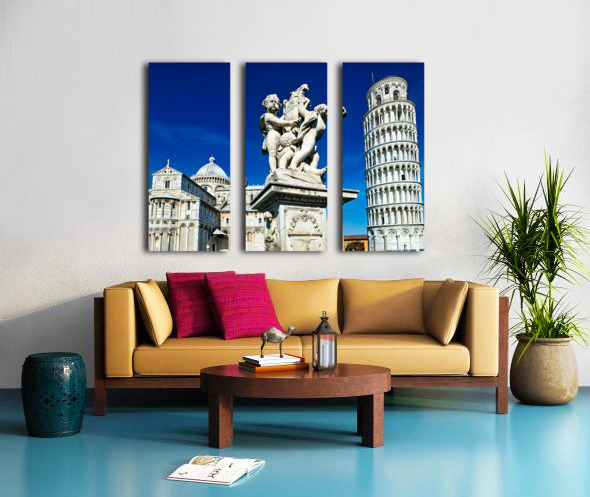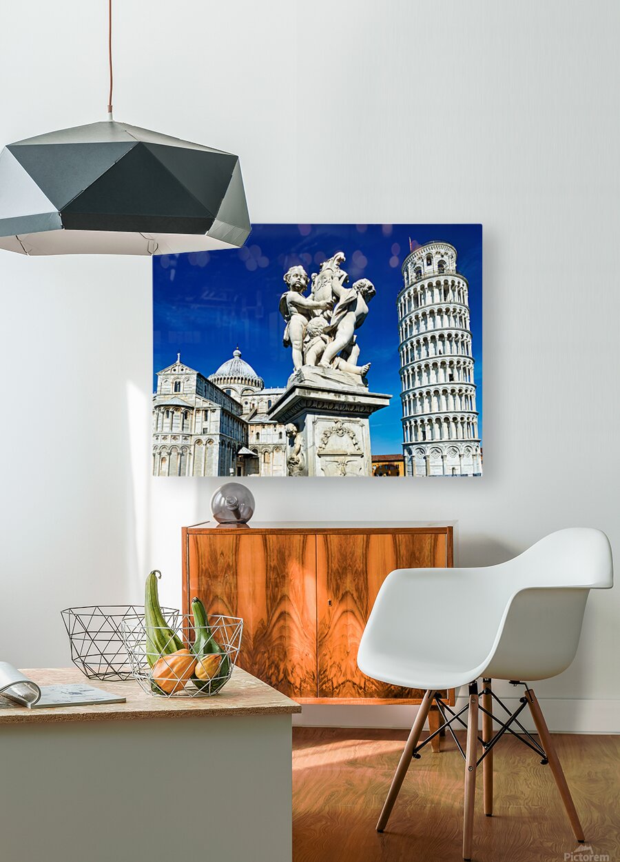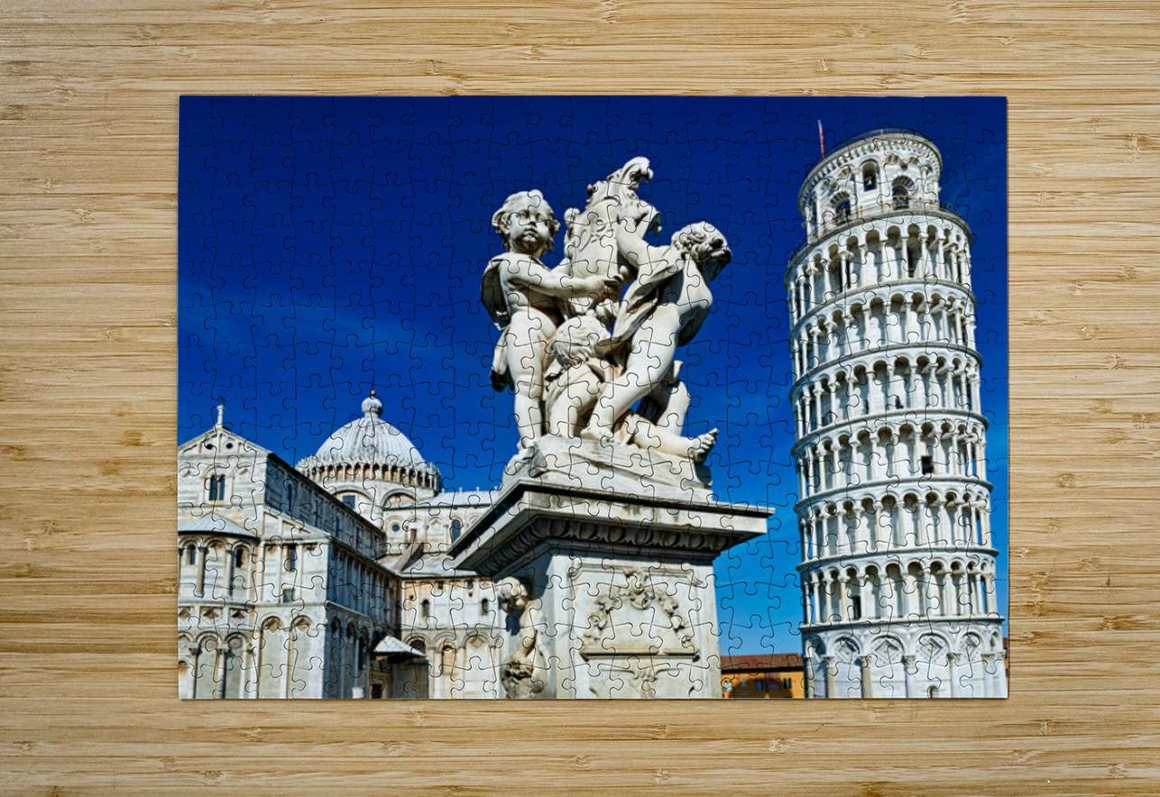 "Iconic Leaning Tower and Fontana dei Putti in Pisa" in a framed print.