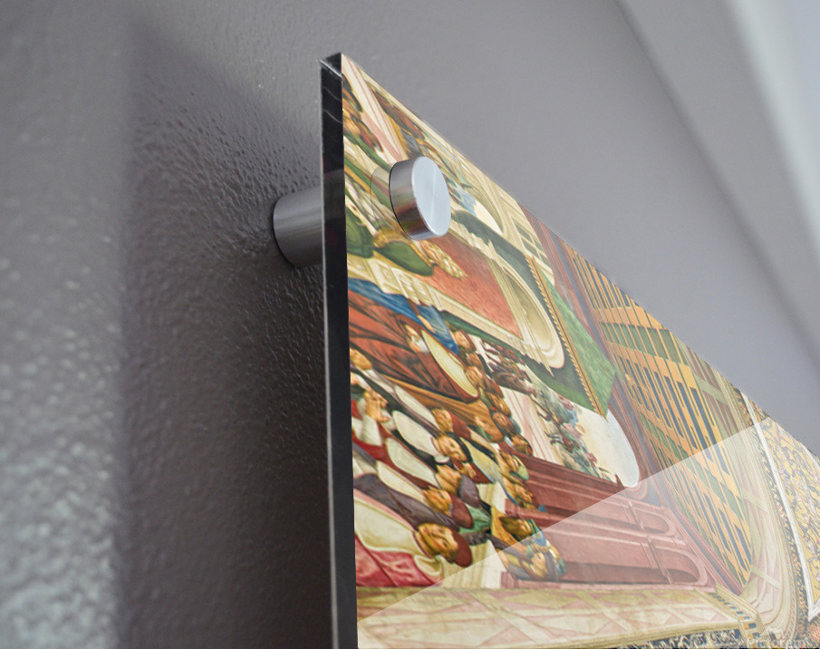 Printed to the edge - Ready to hang - provided with 4 premium polished aluminum stand off ( wall screws and mounting hardware provided )