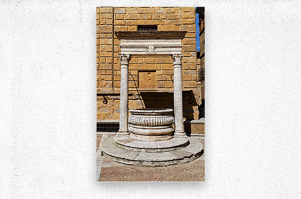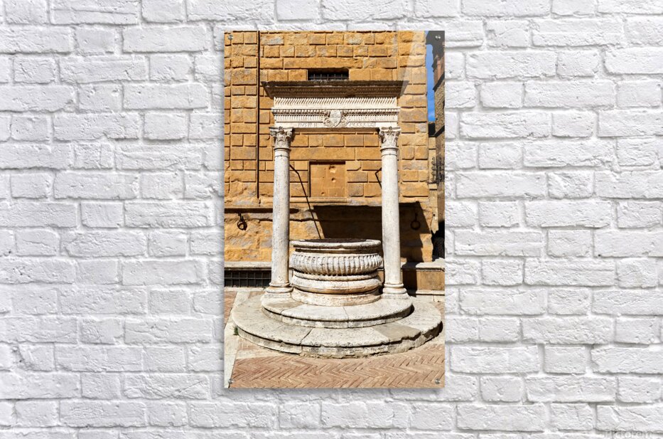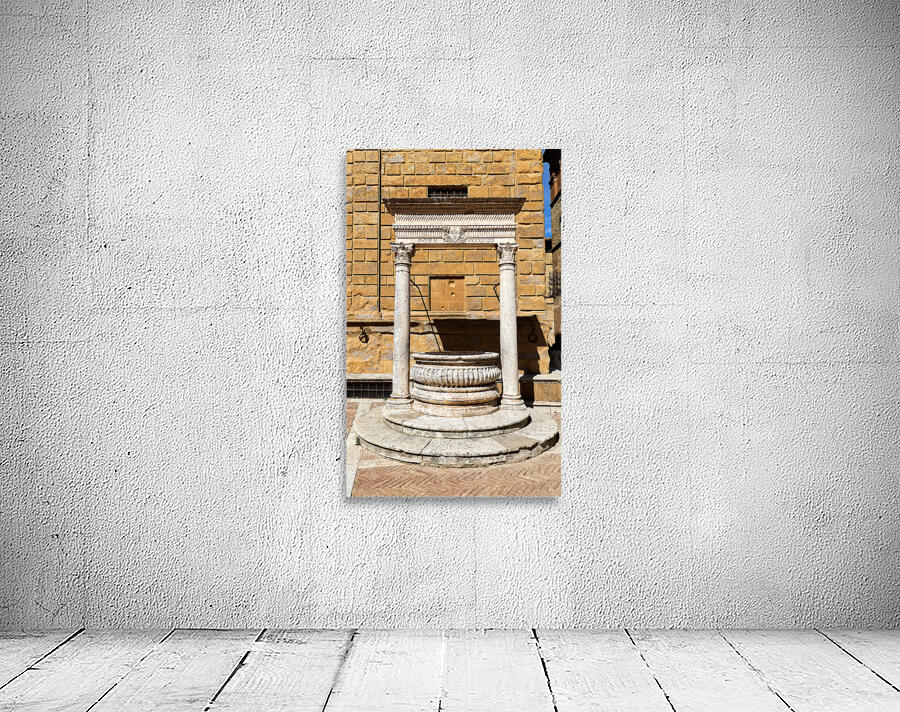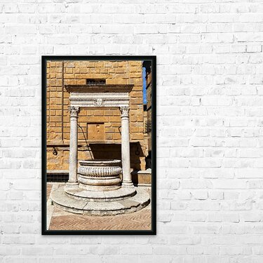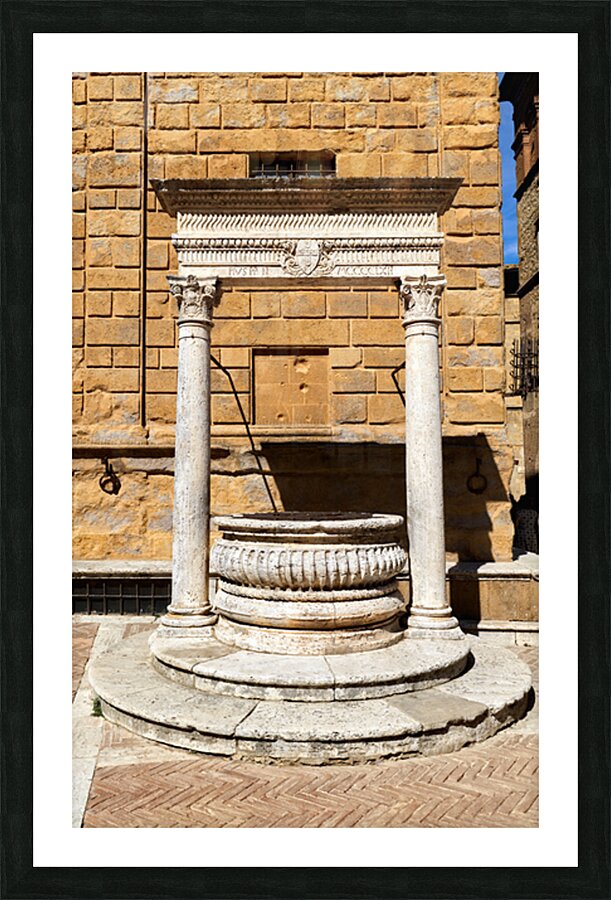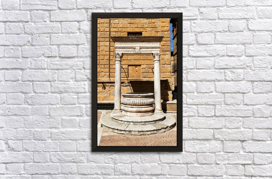 "Visit medieval well in Piazza Square Pio II in Pienza Italy" in a framed print.