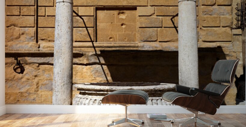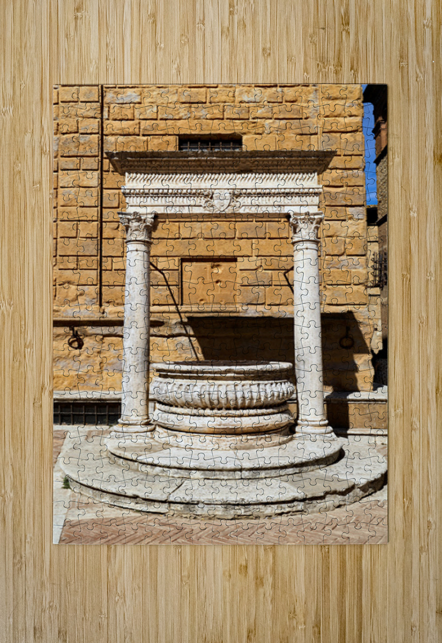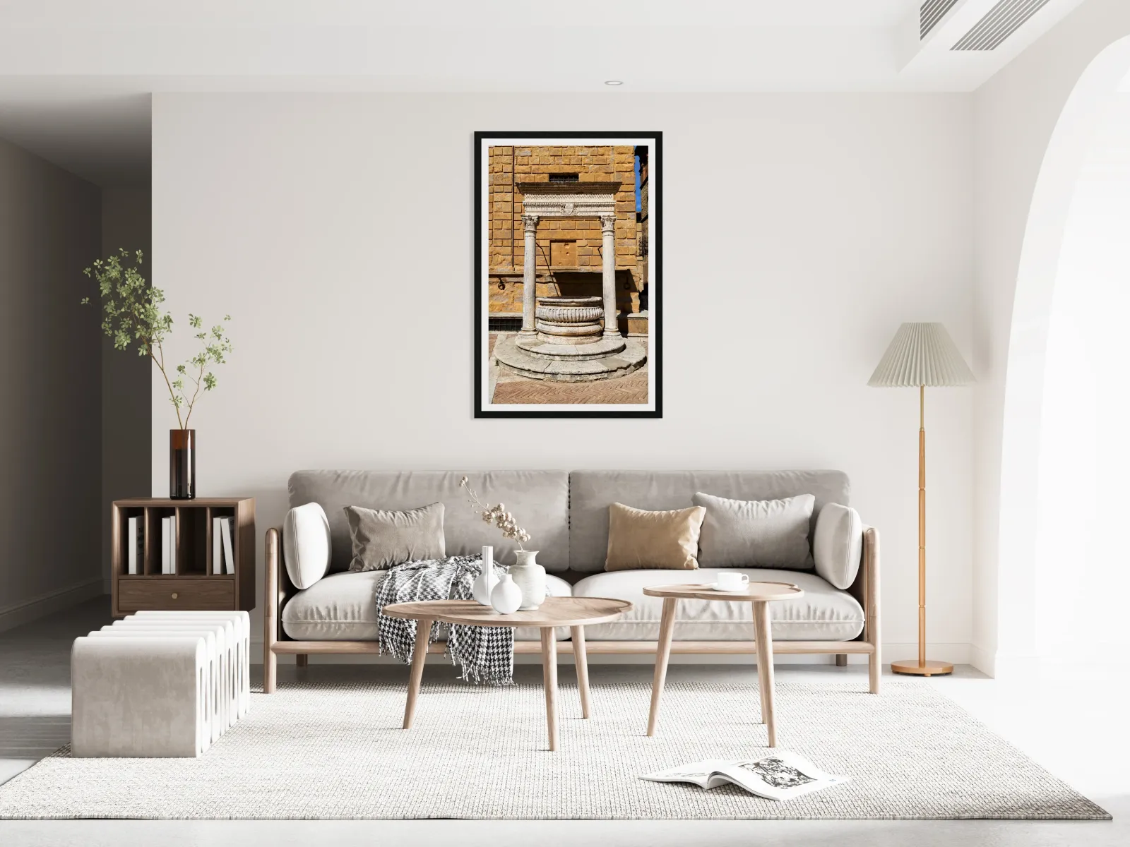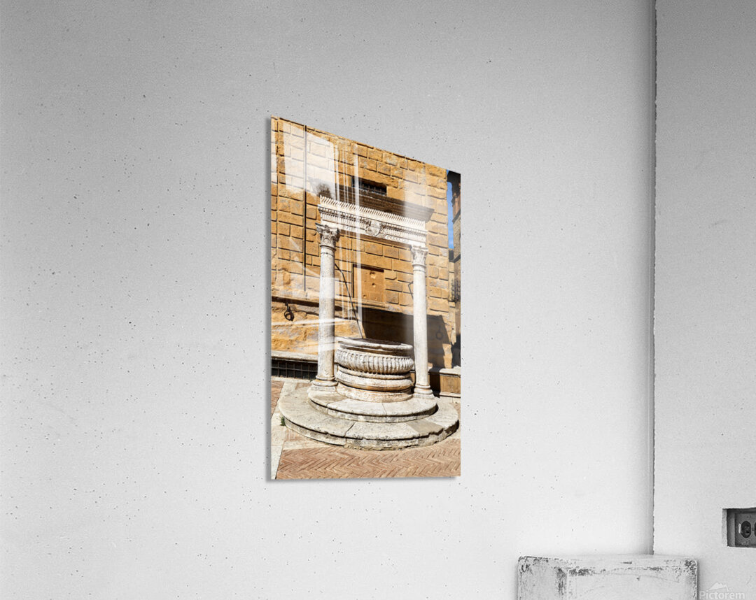 "Visit medieval well in Piazza Square Pio II in Pienza Italy" in a framed print.