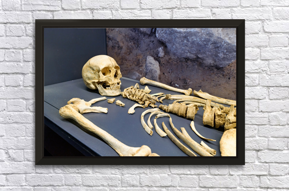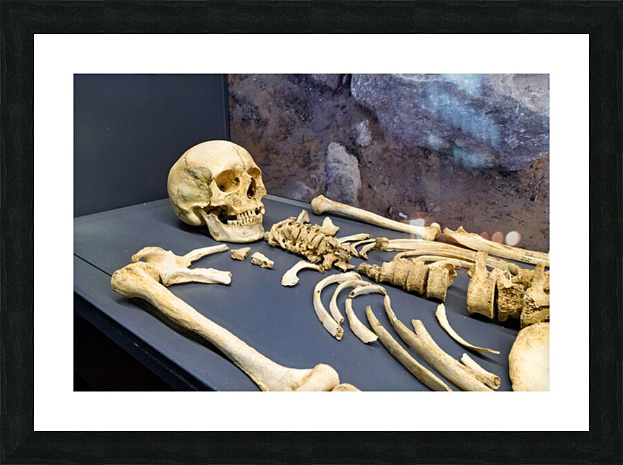 "Remains of a tomb displayed at Guarnacci Museum in Italy" in a framed print.