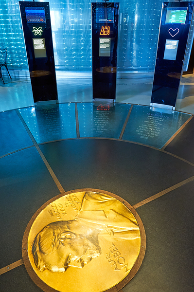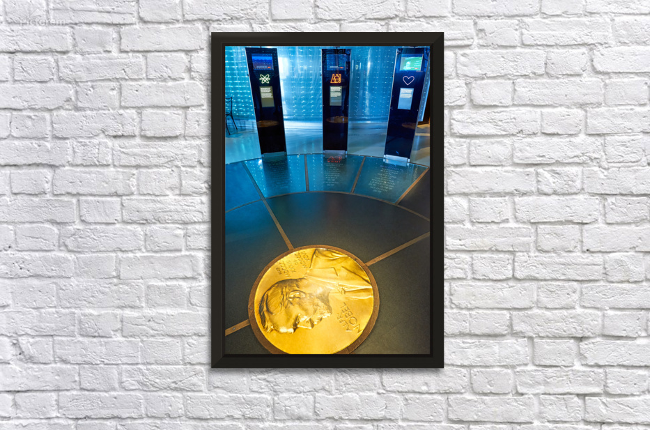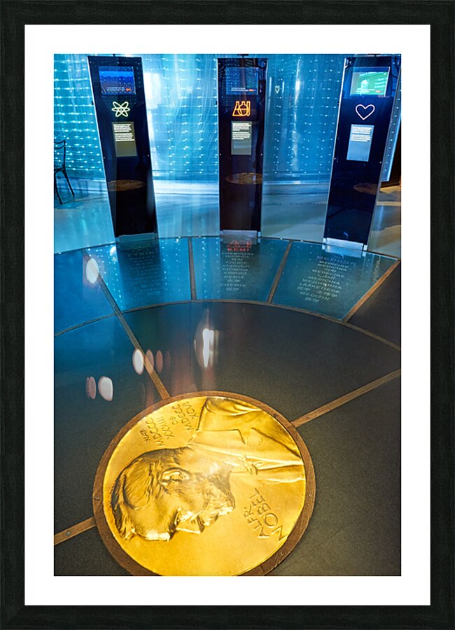 "Exploring exhibitions at Nobel Museum in Stockholm Old Town" in a framed print.