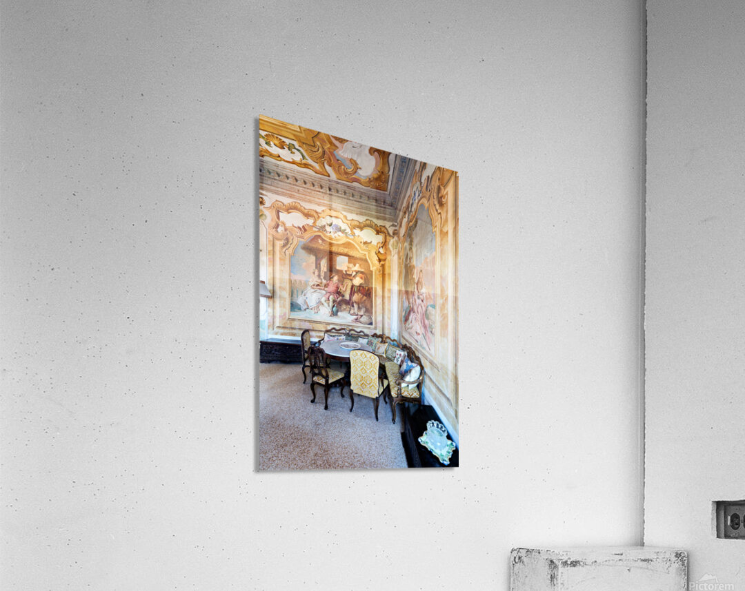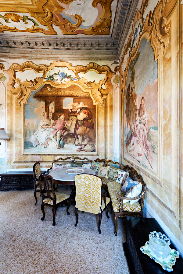 People can see the interior of Villa Valmarana ai Nani in Vicenza Italy. The walls show notable frescoes by Tiepolo.