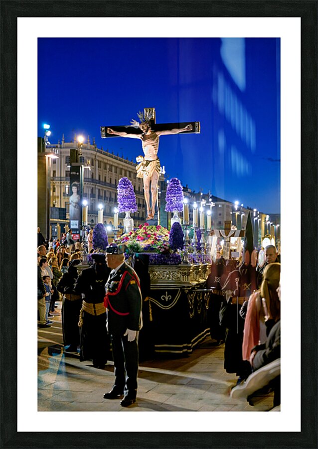 "Easter processions in Zaragoza during Holy Week" in a framed print.