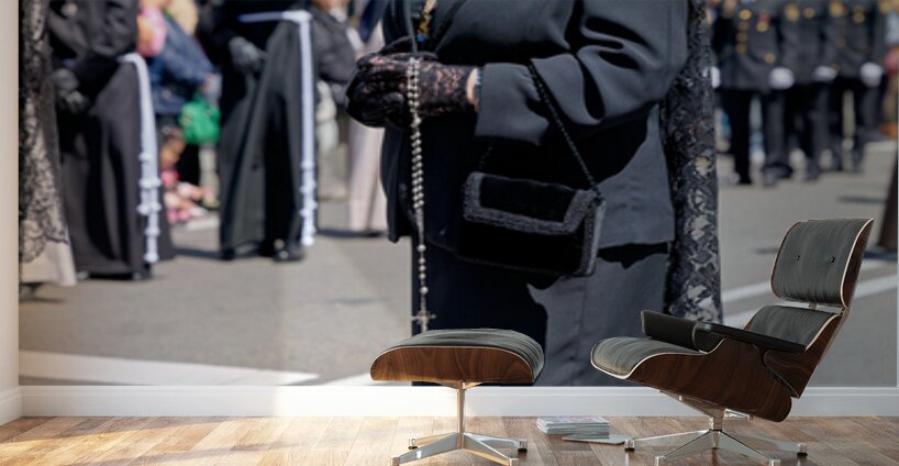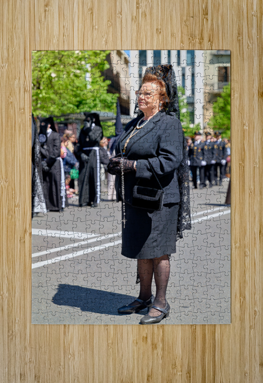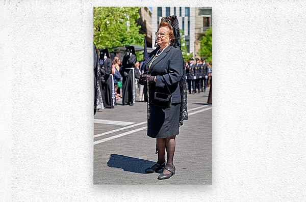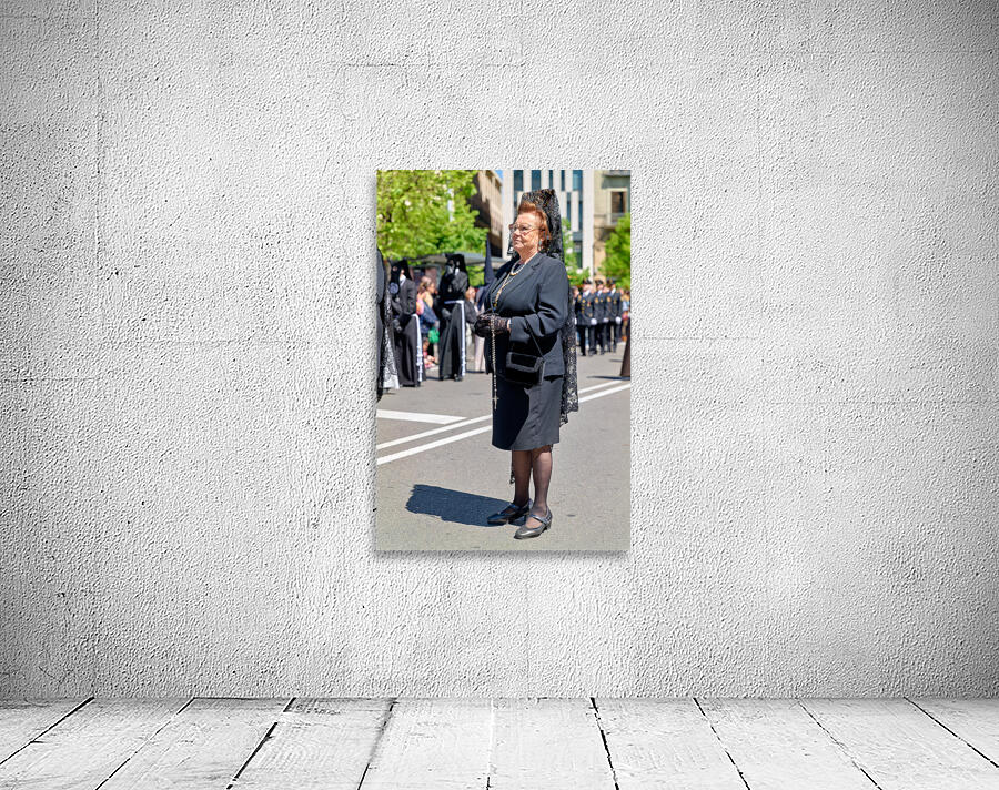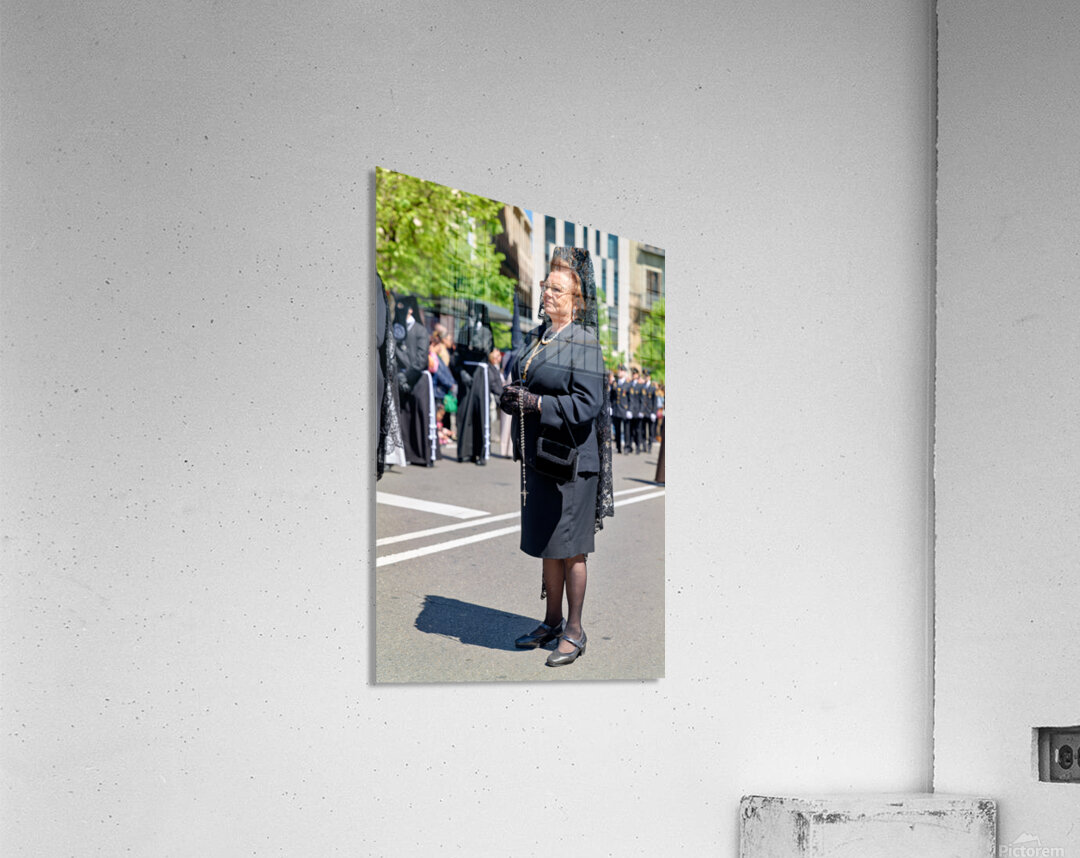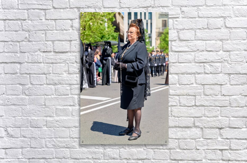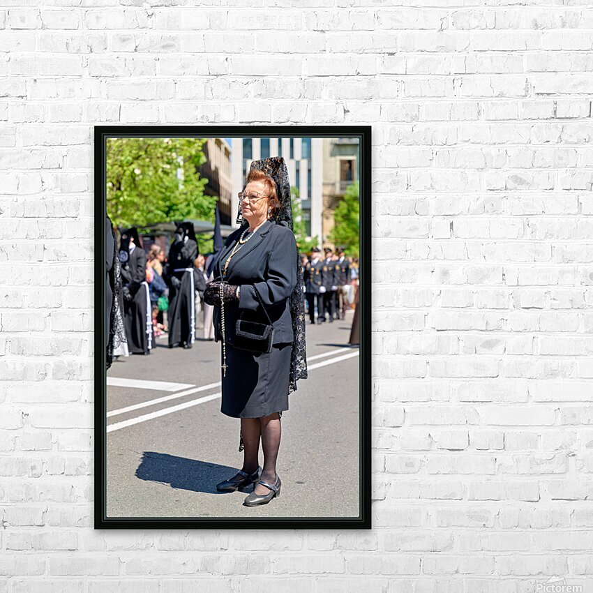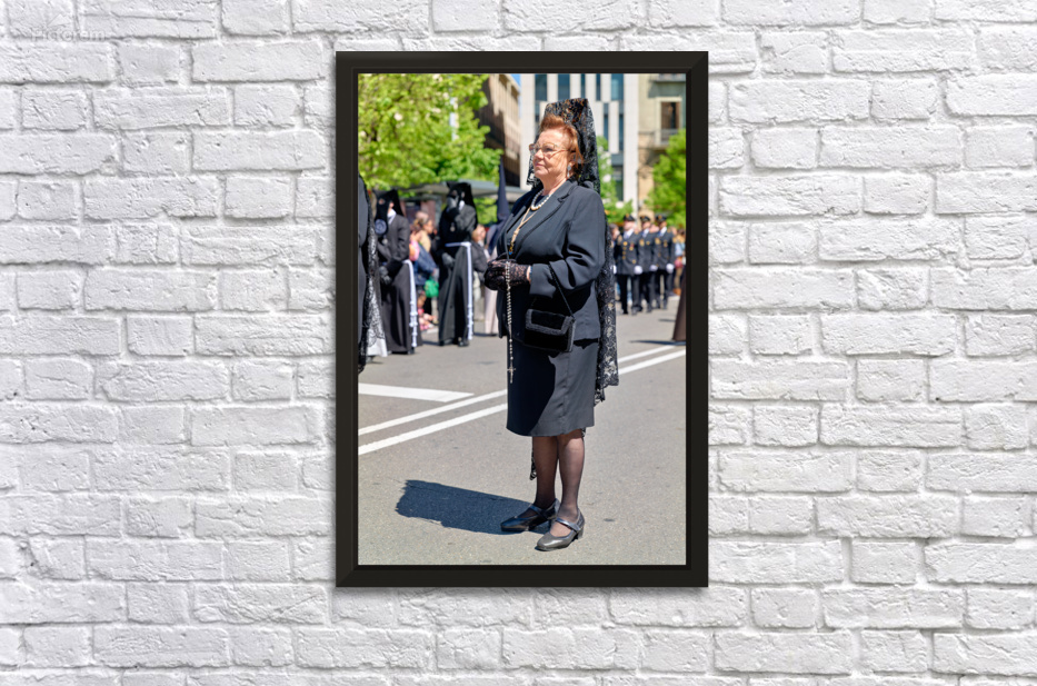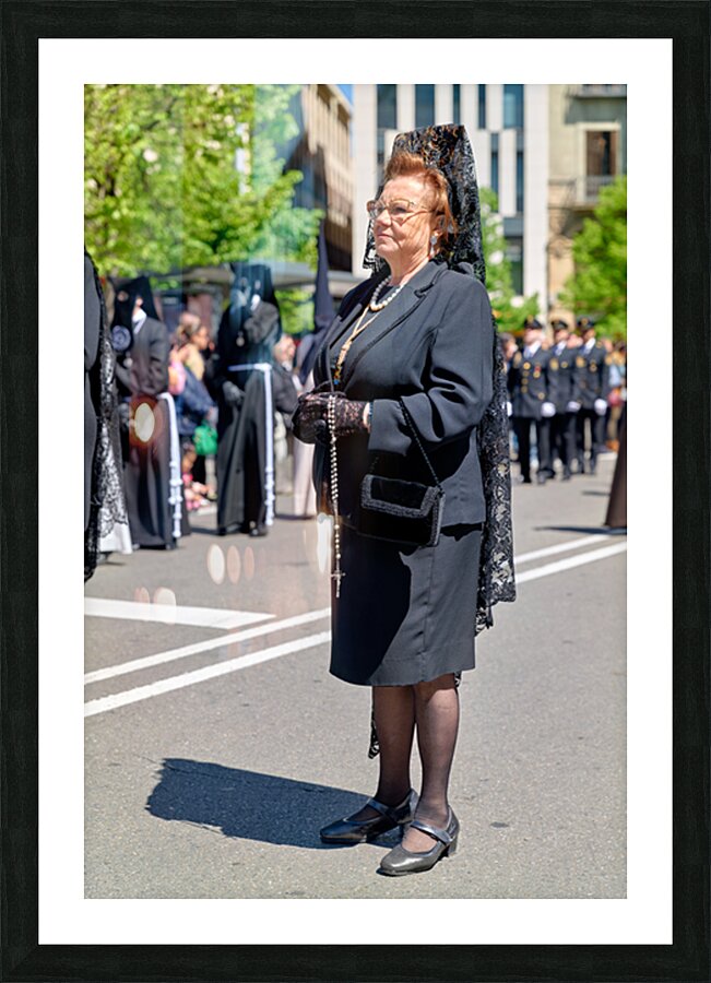 "Easter Holy Week procession in Zaragoza Spain draws attention" in a framed print.