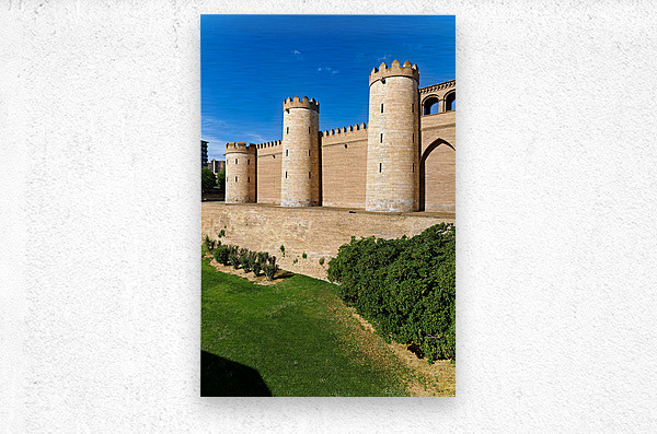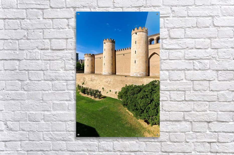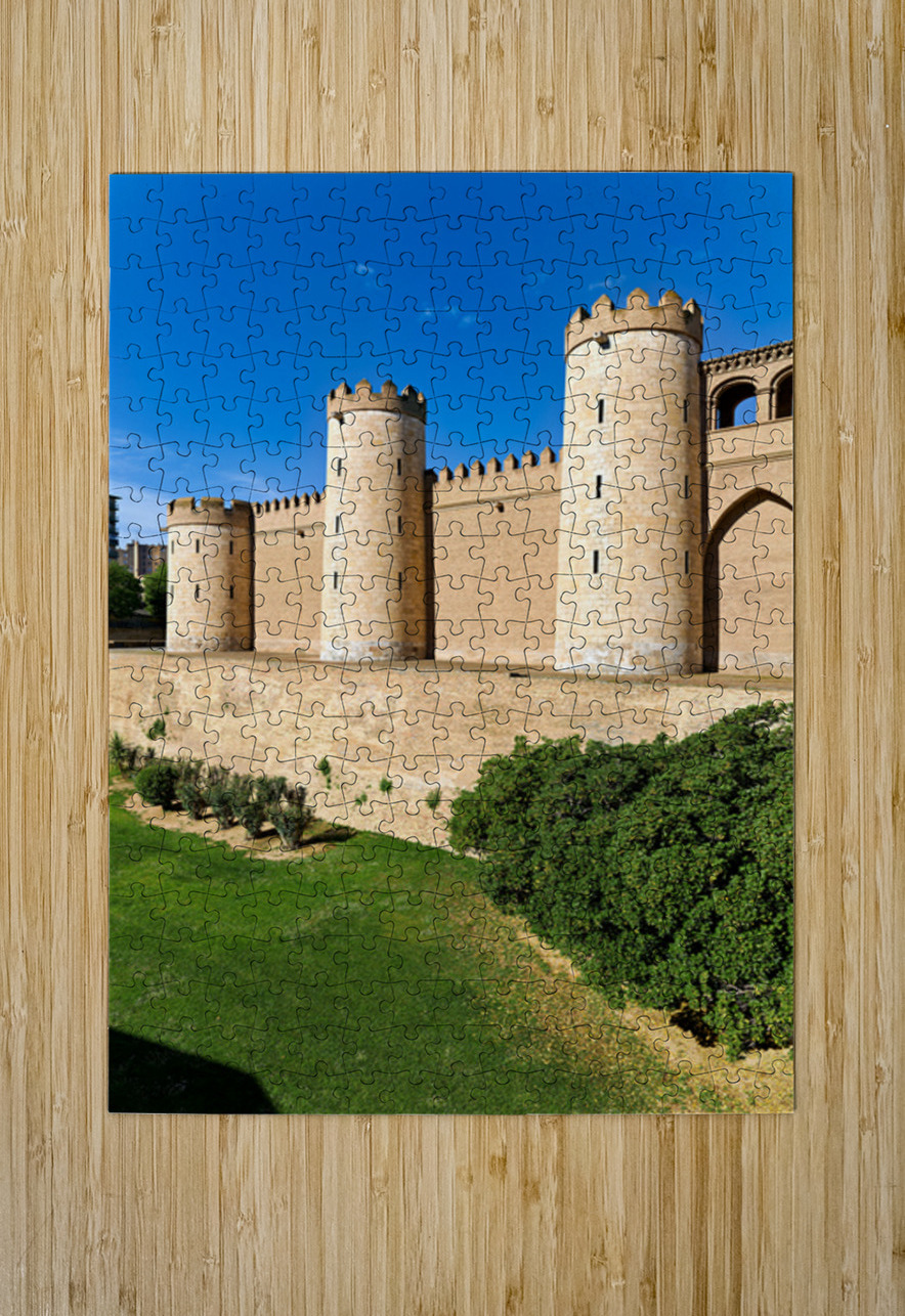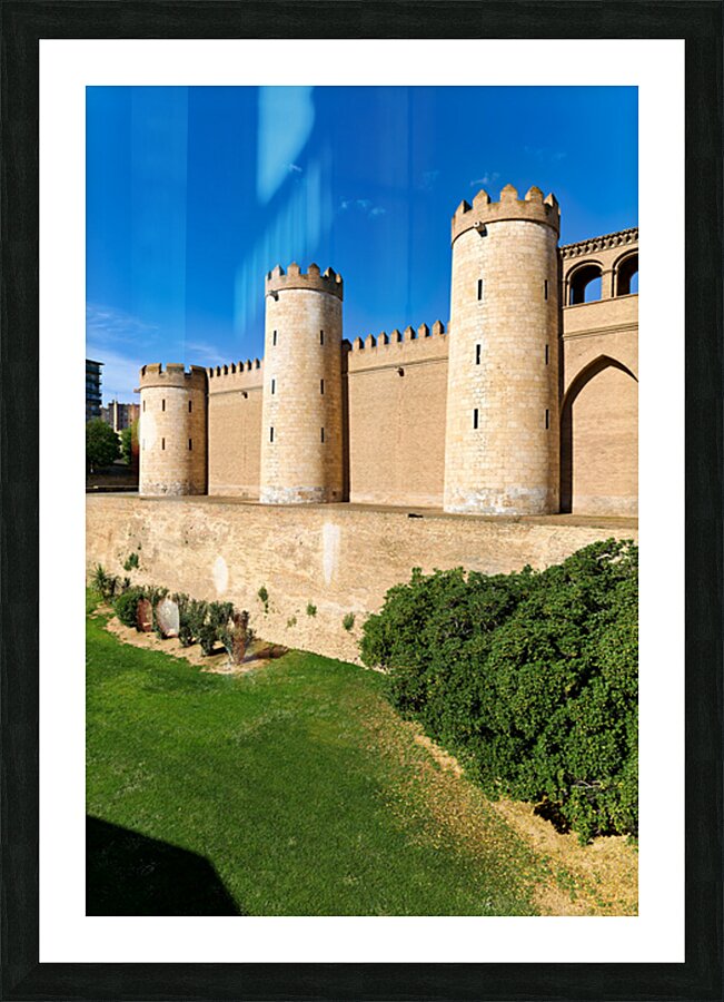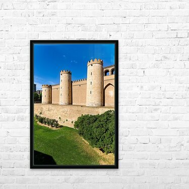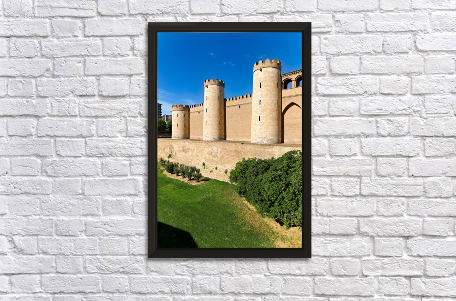 "Explore historic Aljaferia Palace in Zaragoza Spain" in a framed print.