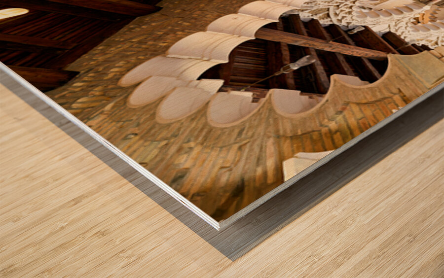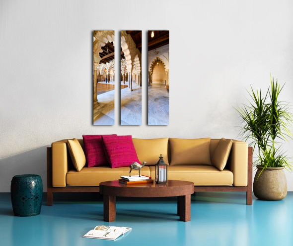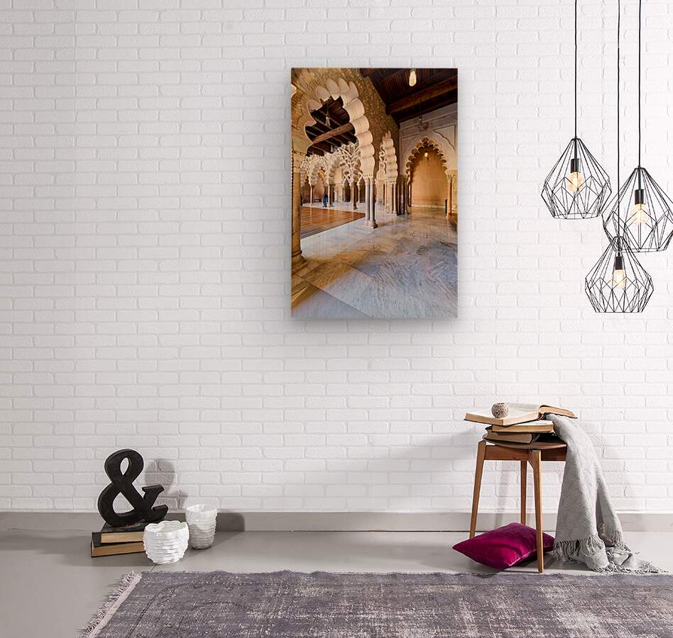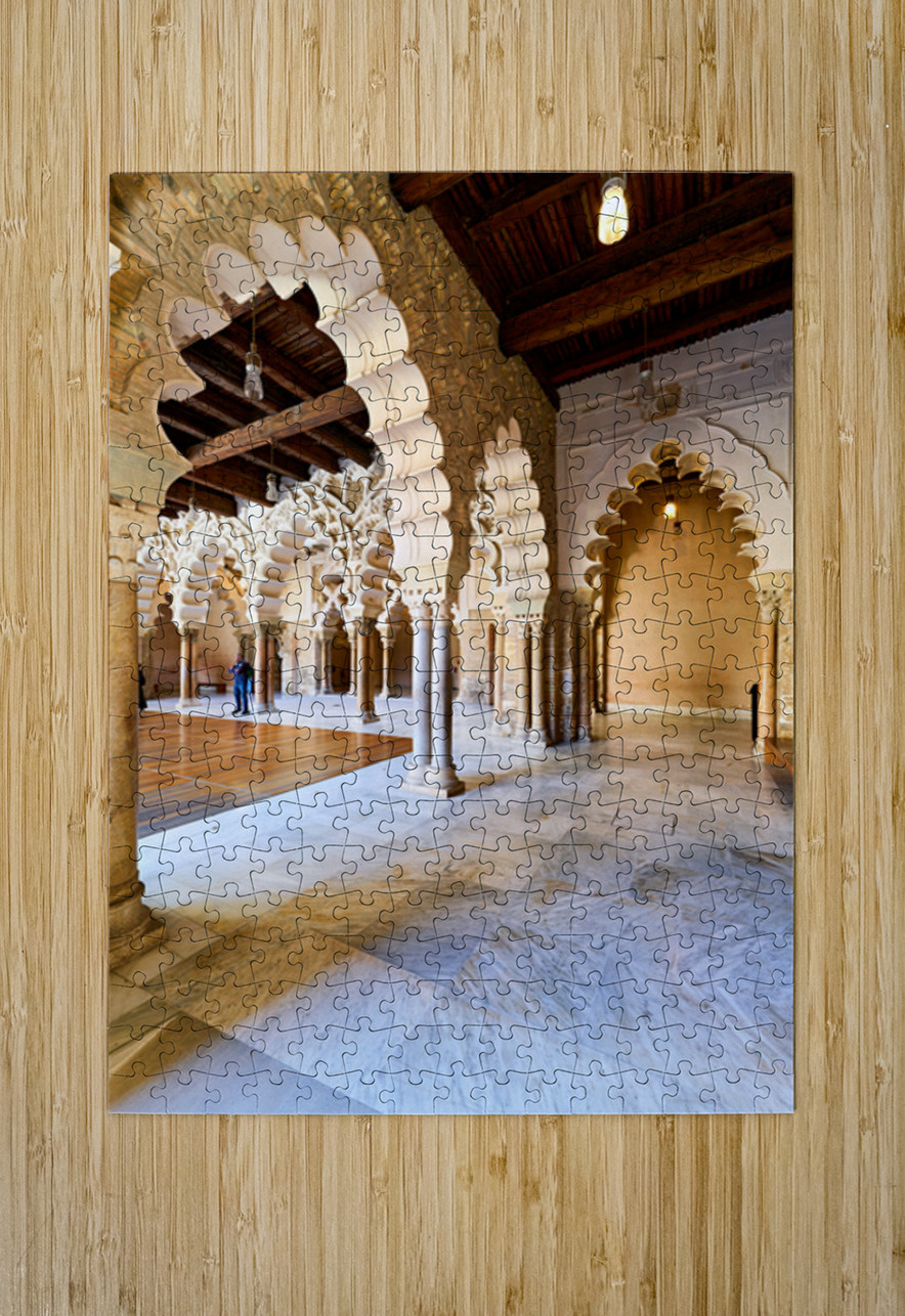 "Explore Aljafería Palaces stunning architecture" in a framed print.