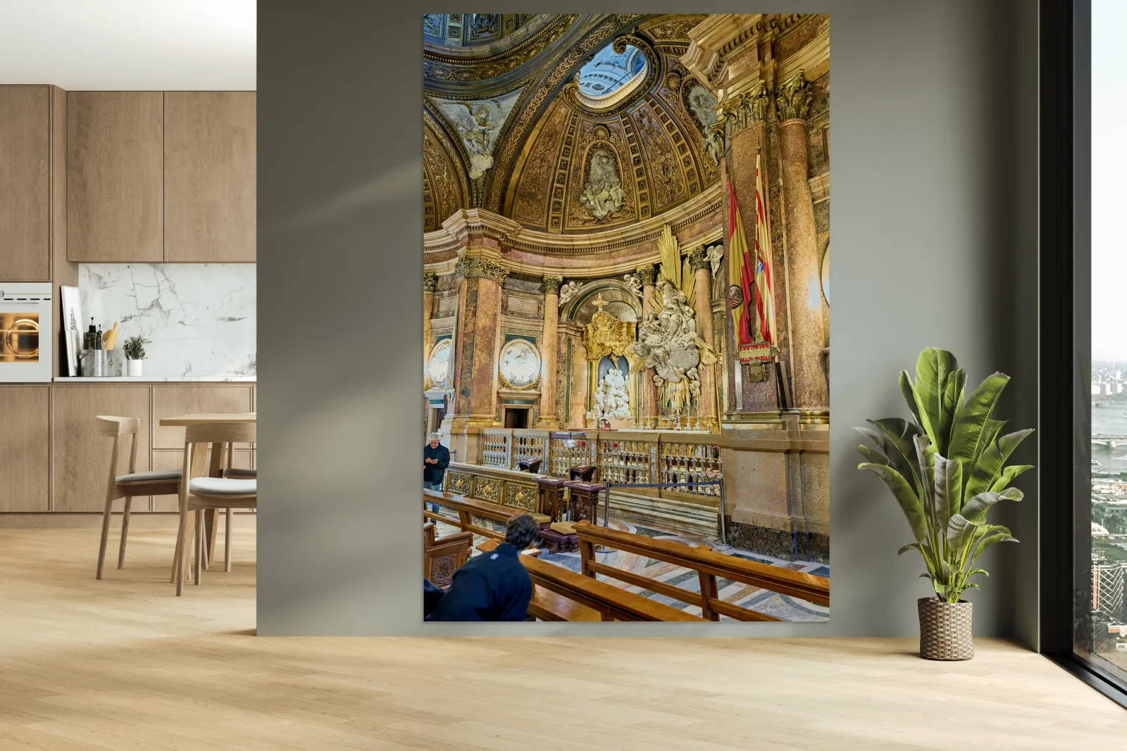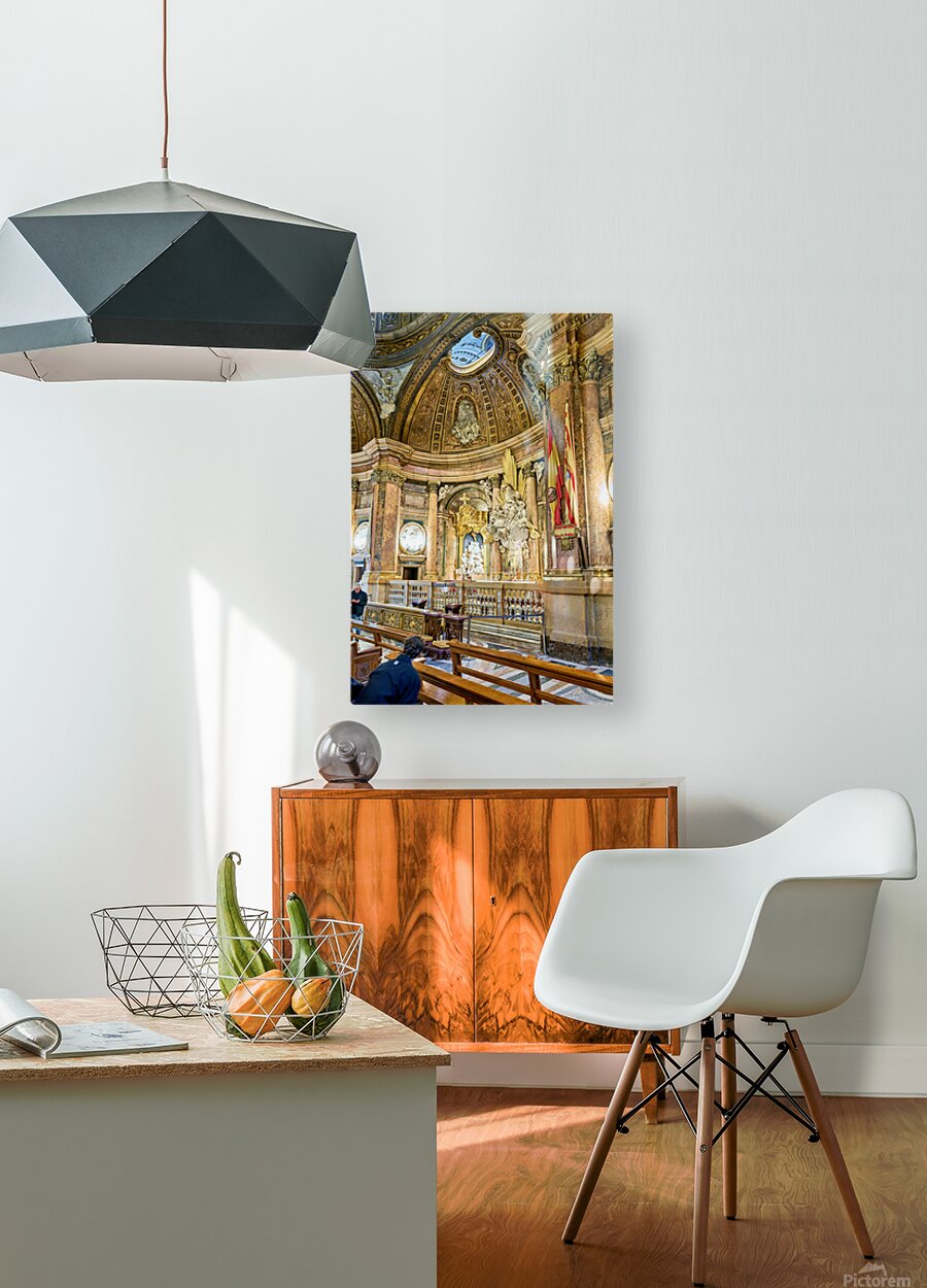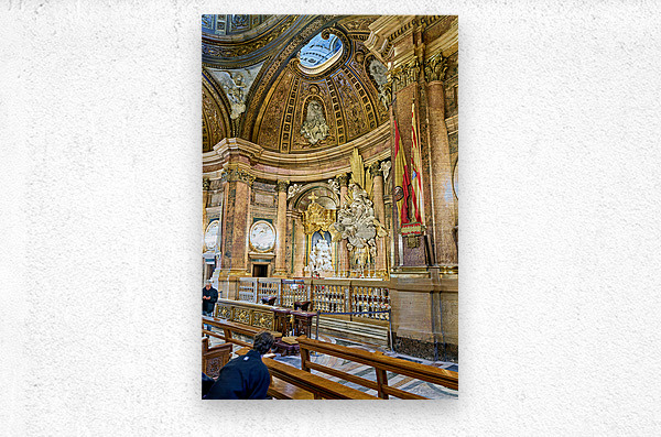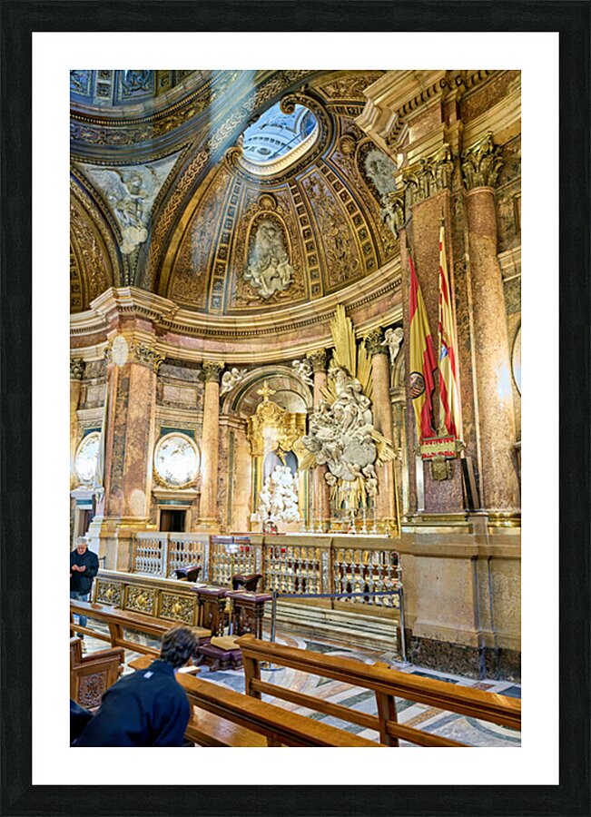 "Visitors explore the Cathedral Basilica in Zaragoza" in a framed print.