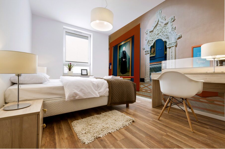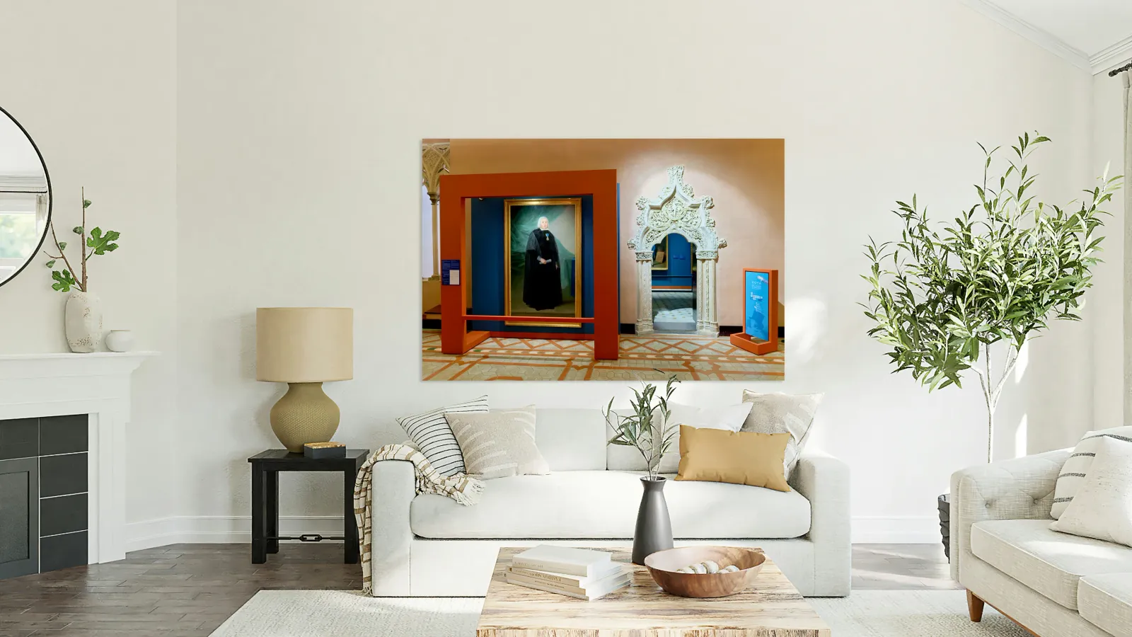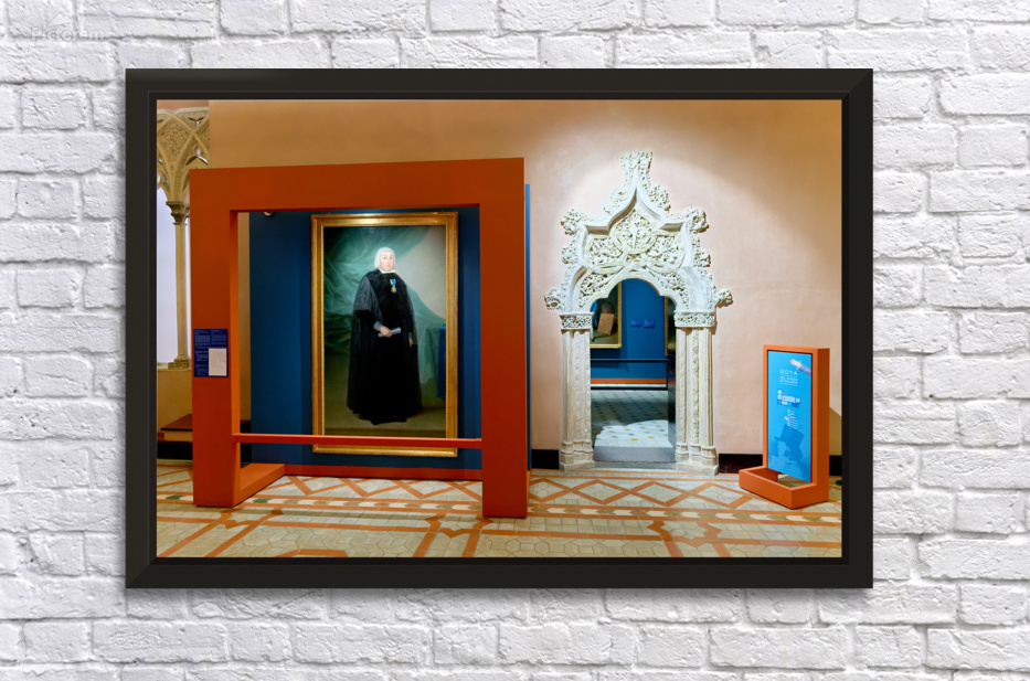 "Exploring Aljafería Palace with artwork by Goya" in a framed print.
