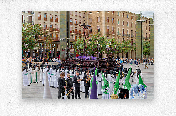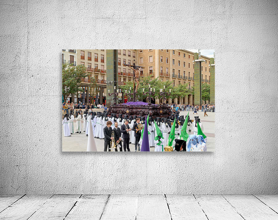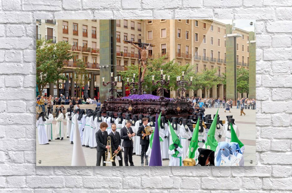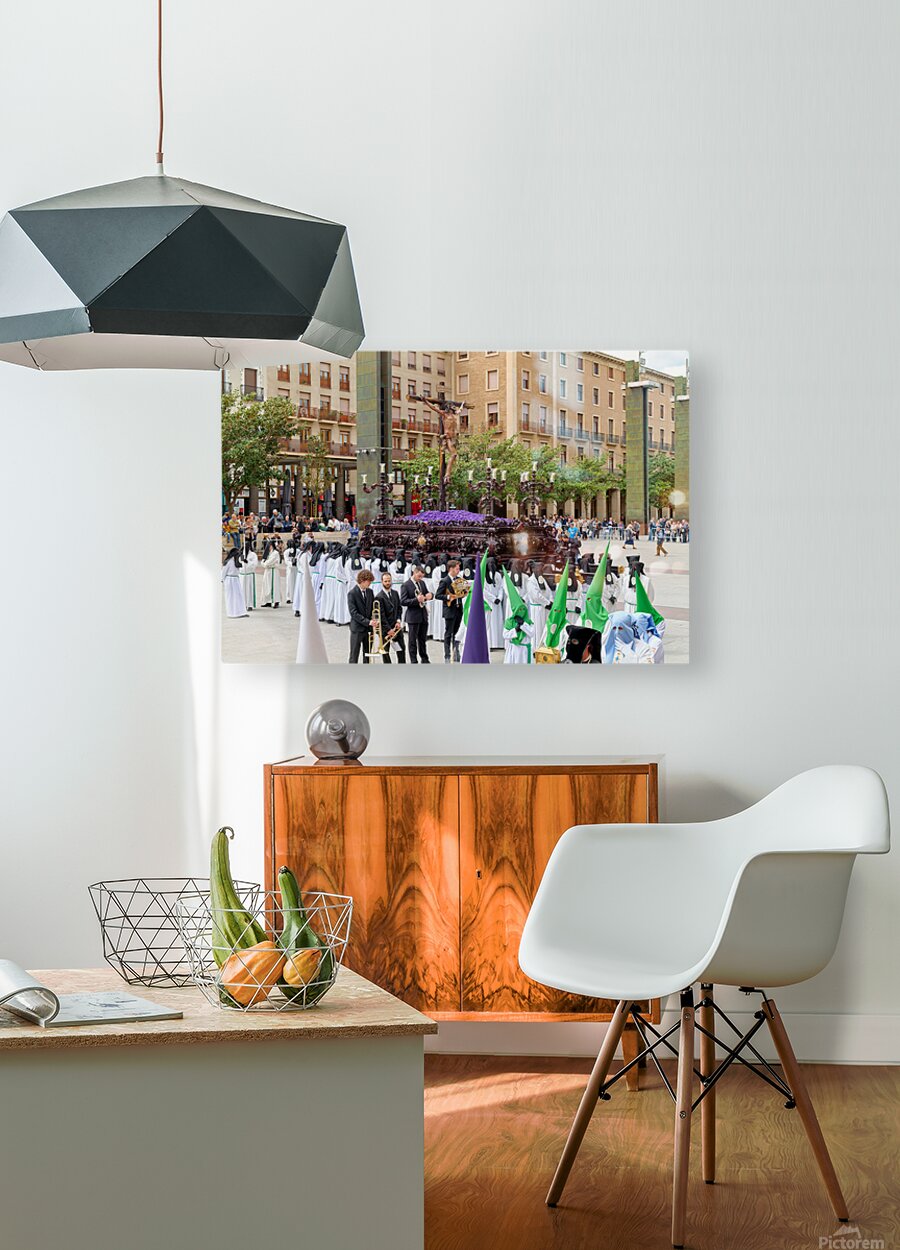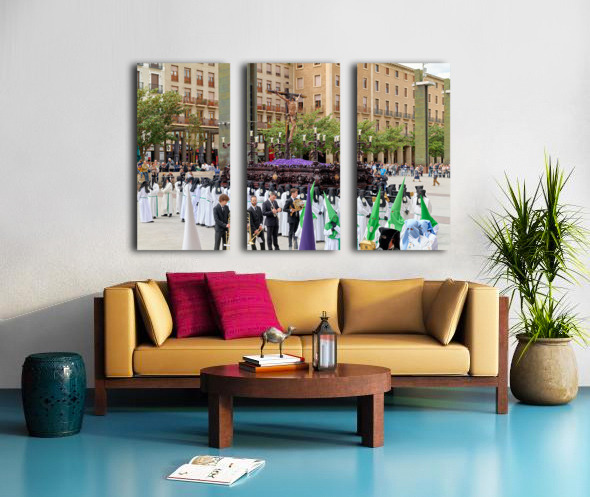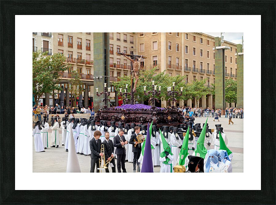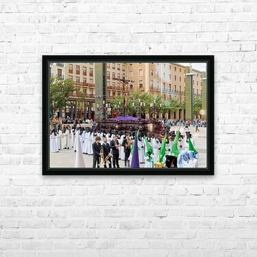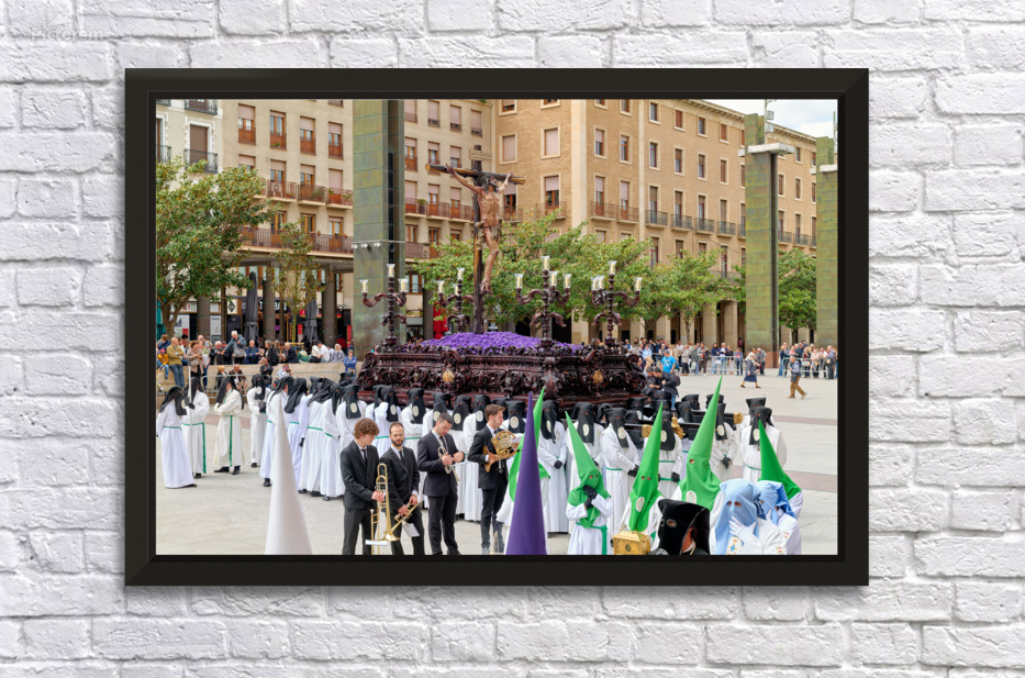 "Processions in Zaragoza during Easter Holy Week celebrations" in a framed print.