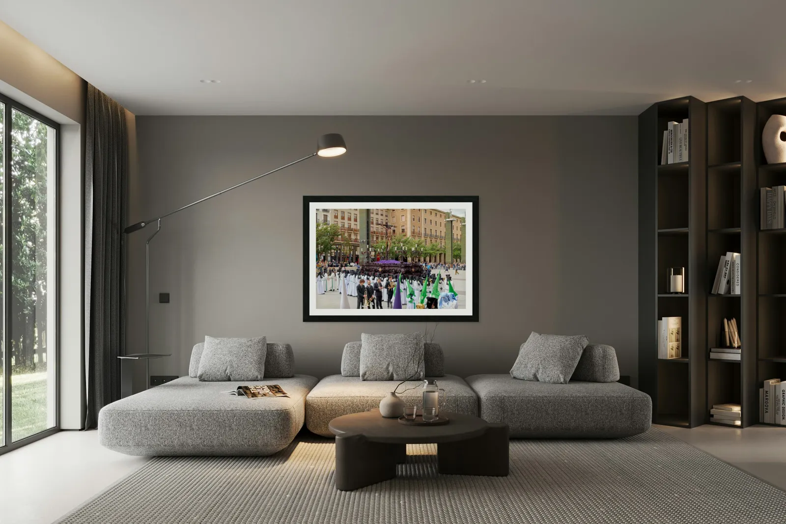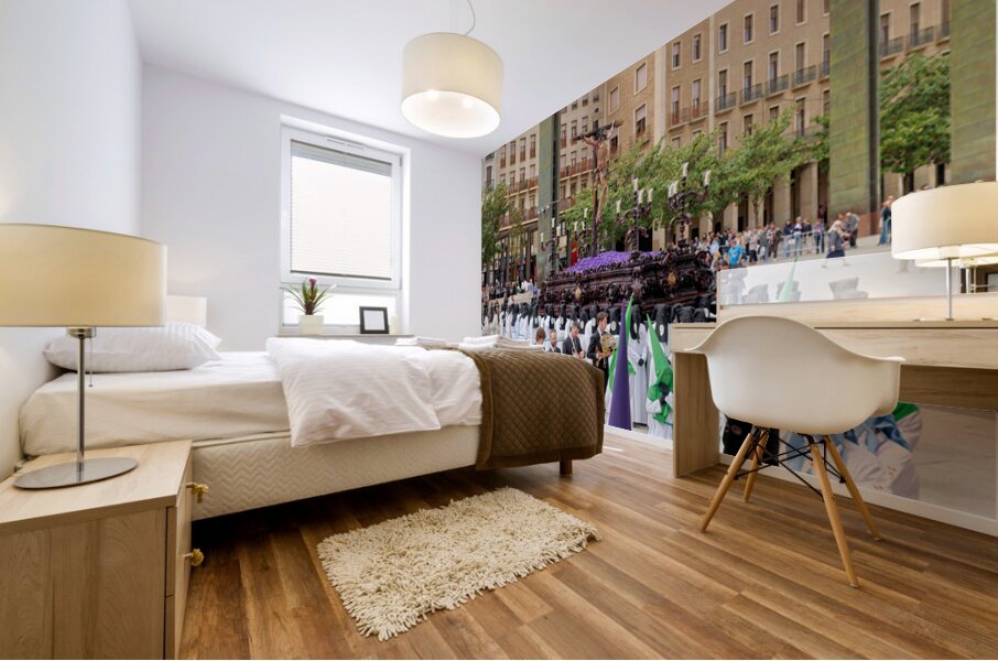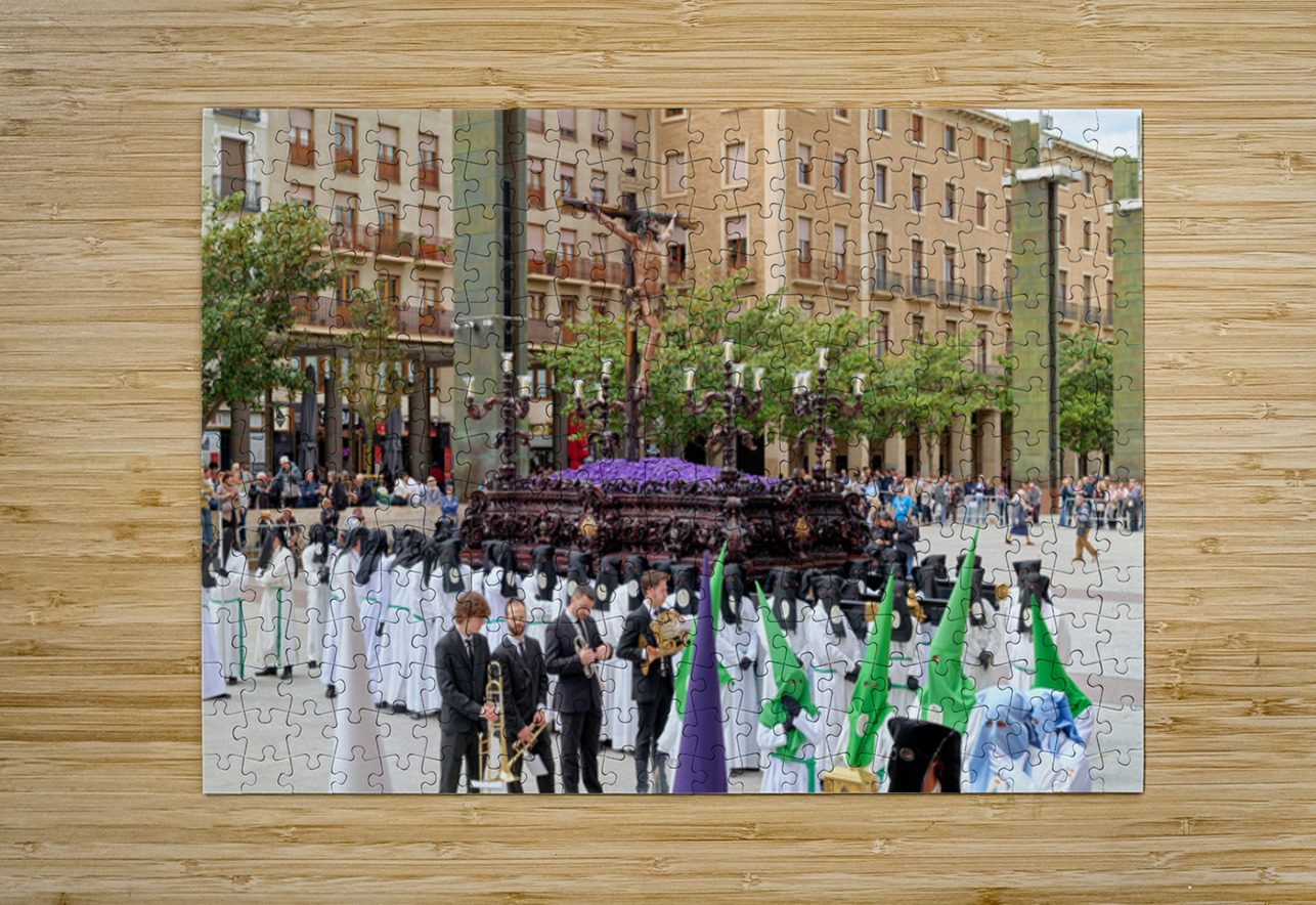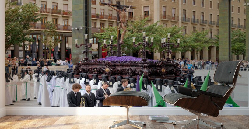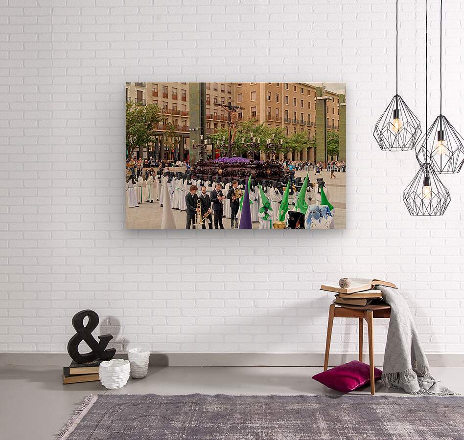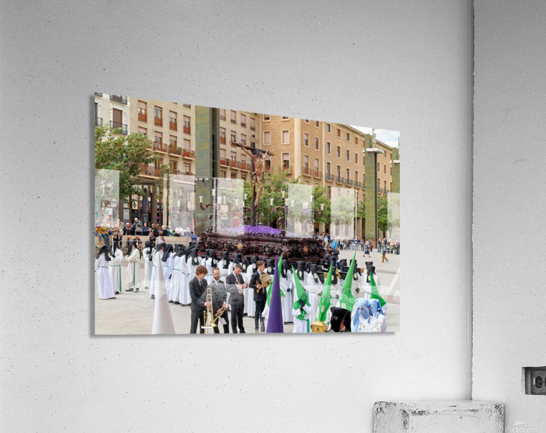 "Processions in Zaragoza during Easter Holy Week celebrations" in a framed print.