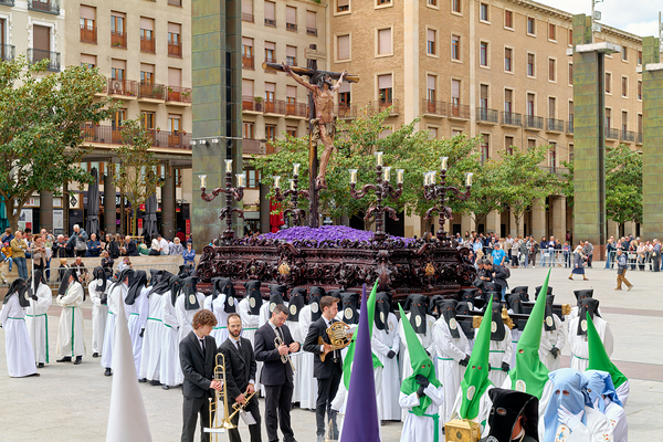 Crowds gather to watch processions in Zaragoza for Easter Holy Week.