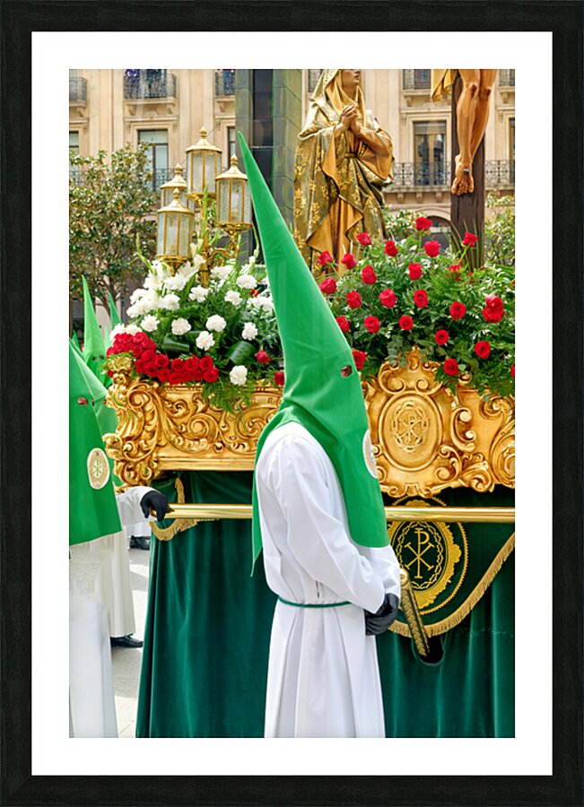 "Processions during Easter Holy Week in Zaragoza Spain" in a framed print.