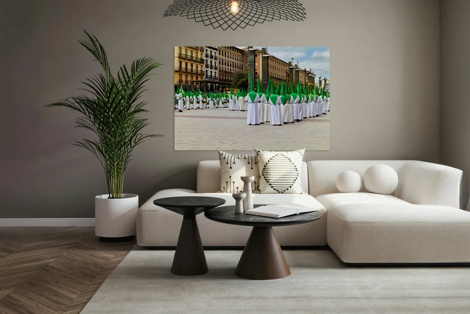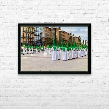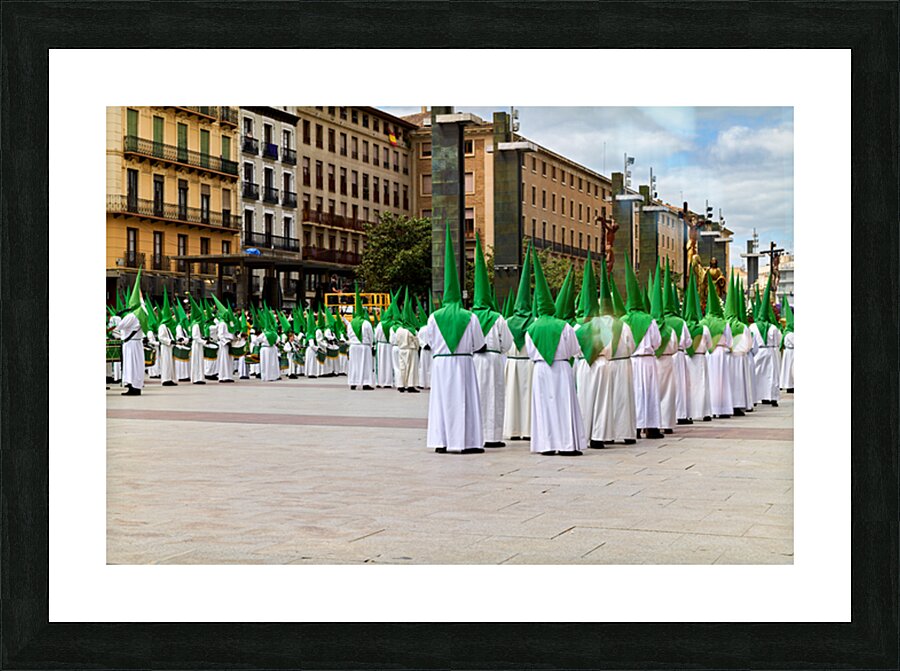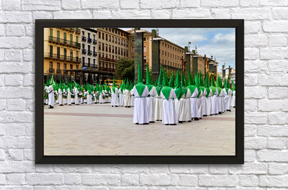 "Zaragozas Easter processions showcase unique costumes" in a framed print.
