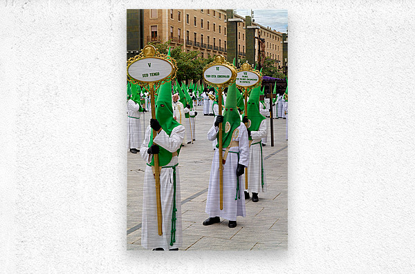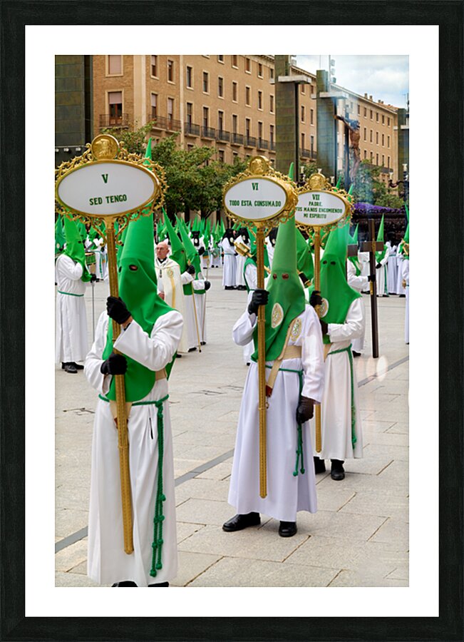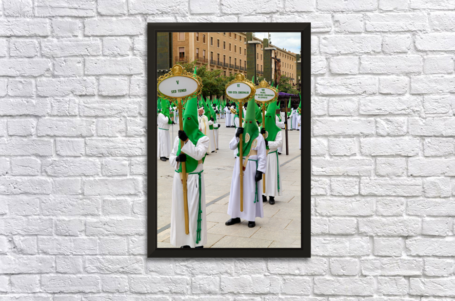 "Processions during Holy Week in Zaragoza Spain" in a framed print.