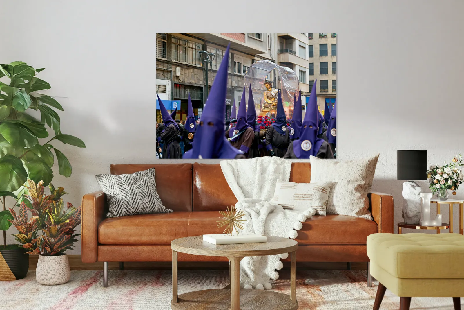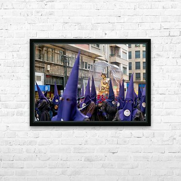"Easter processions in Zaragoza during Holy Week celebrations" in a framed print.