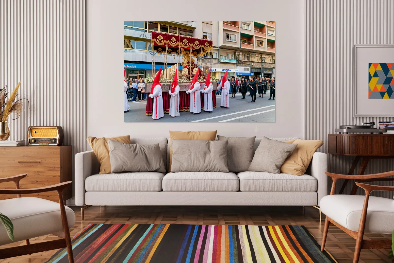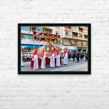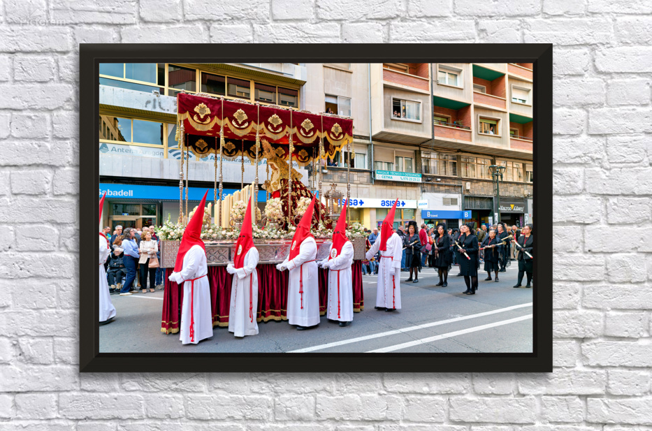"Easter processions in Zaragoza during Holy Week" in a framed print.