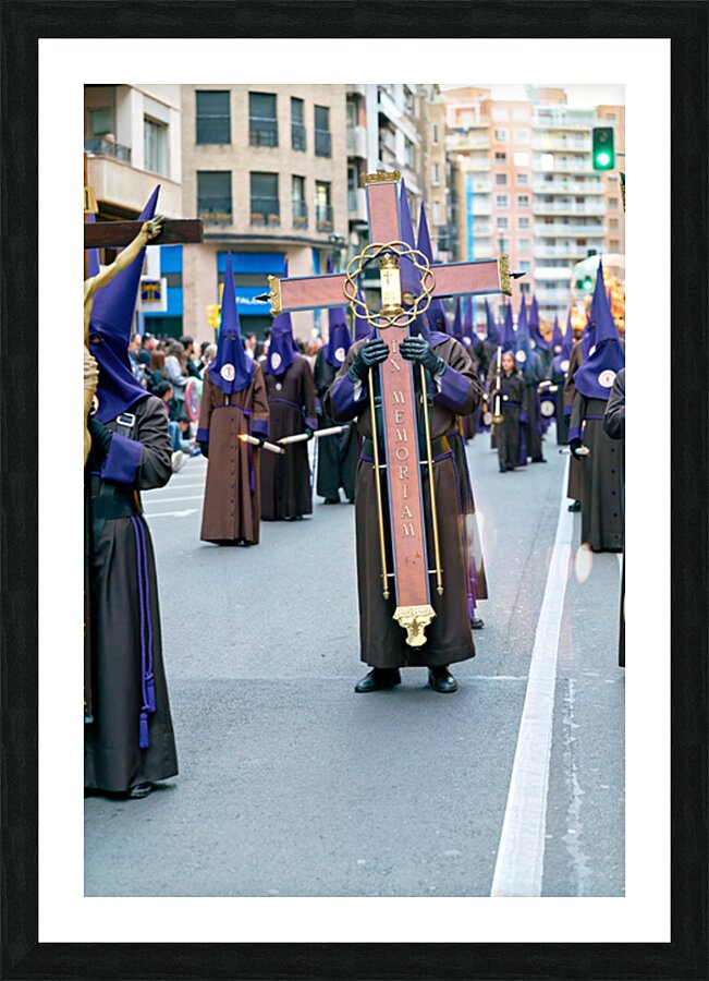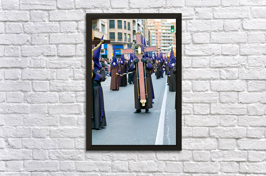 "Processions during Easter Holy Week in Zaragoza Spain" in a framed print.