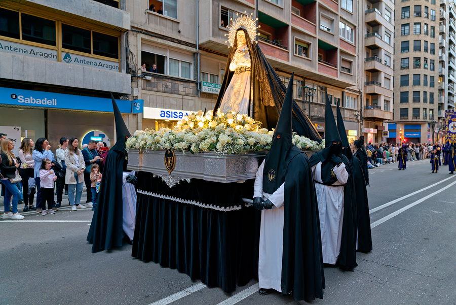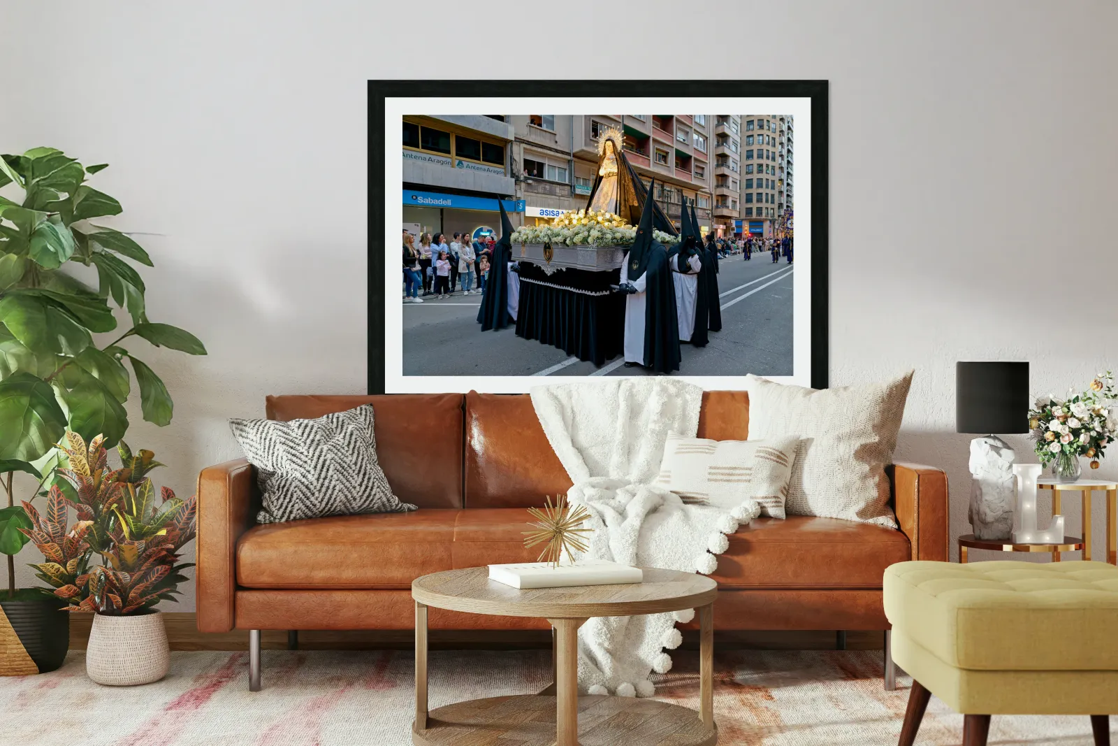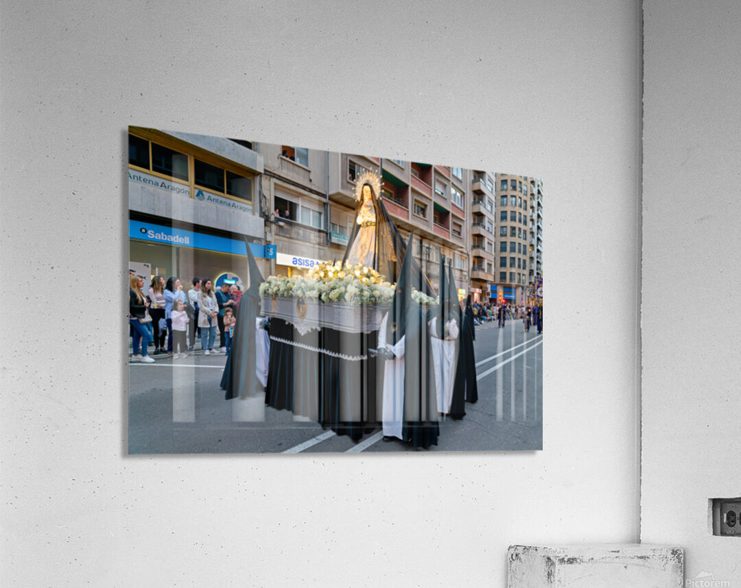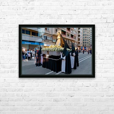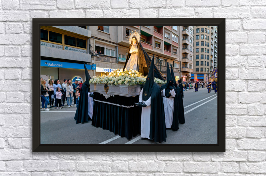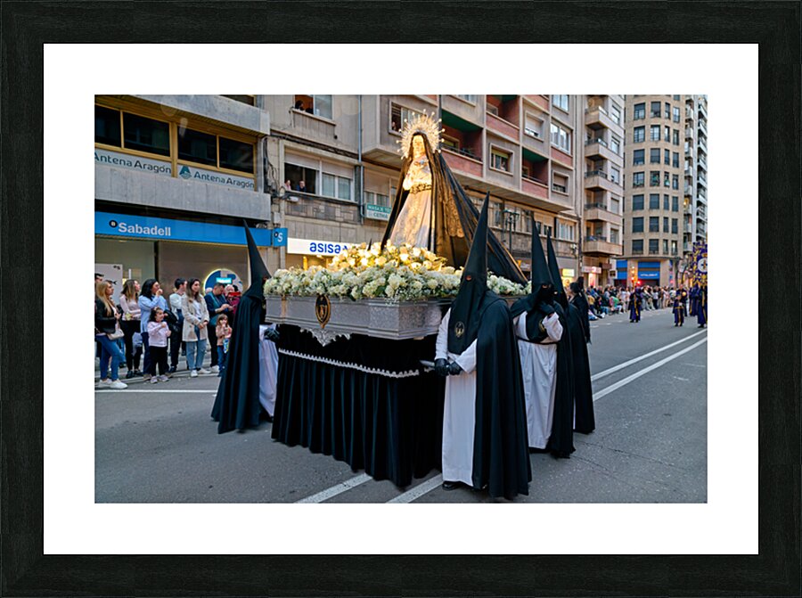 "Procession during Easter Holy Week in Zaragoza Spain" in a framed print.