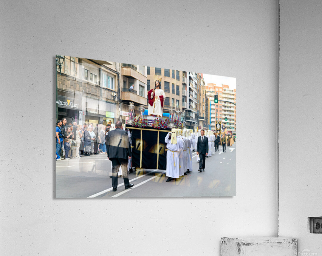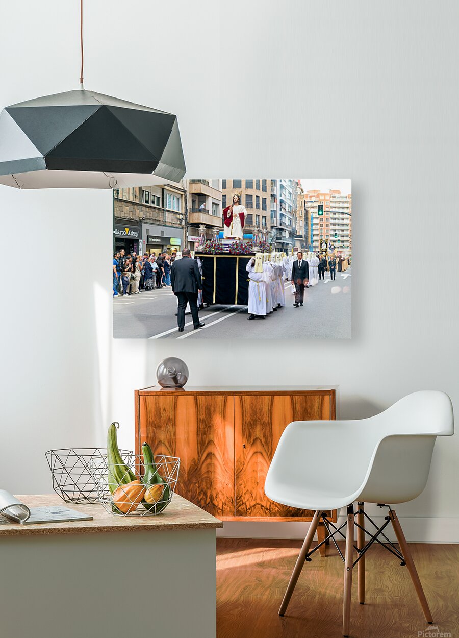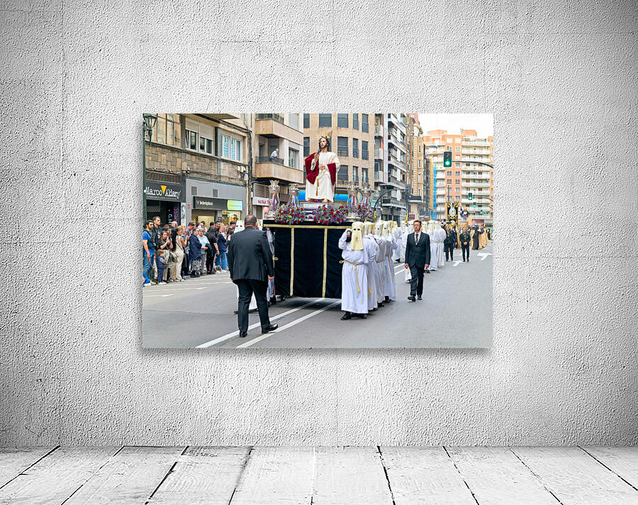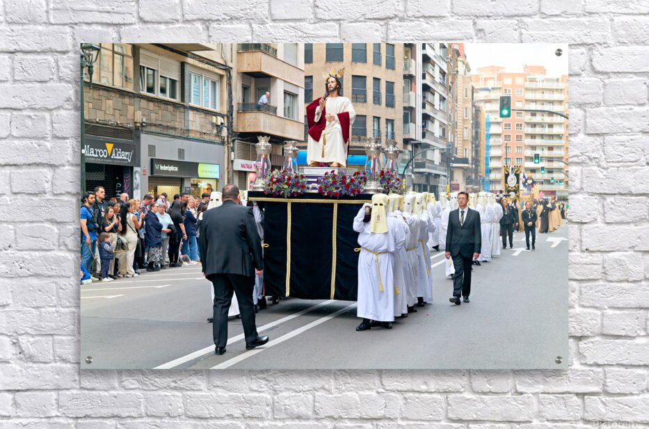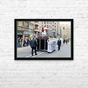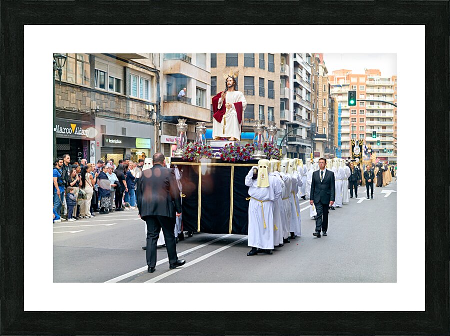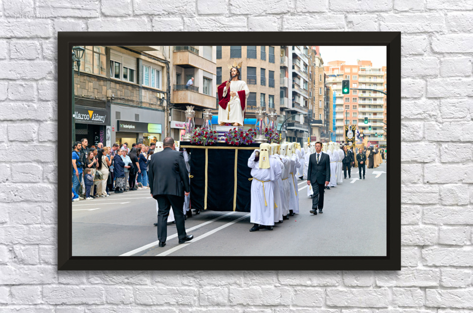 "Easter Holy Week procession in Zaragoza Spain" in a framed print.