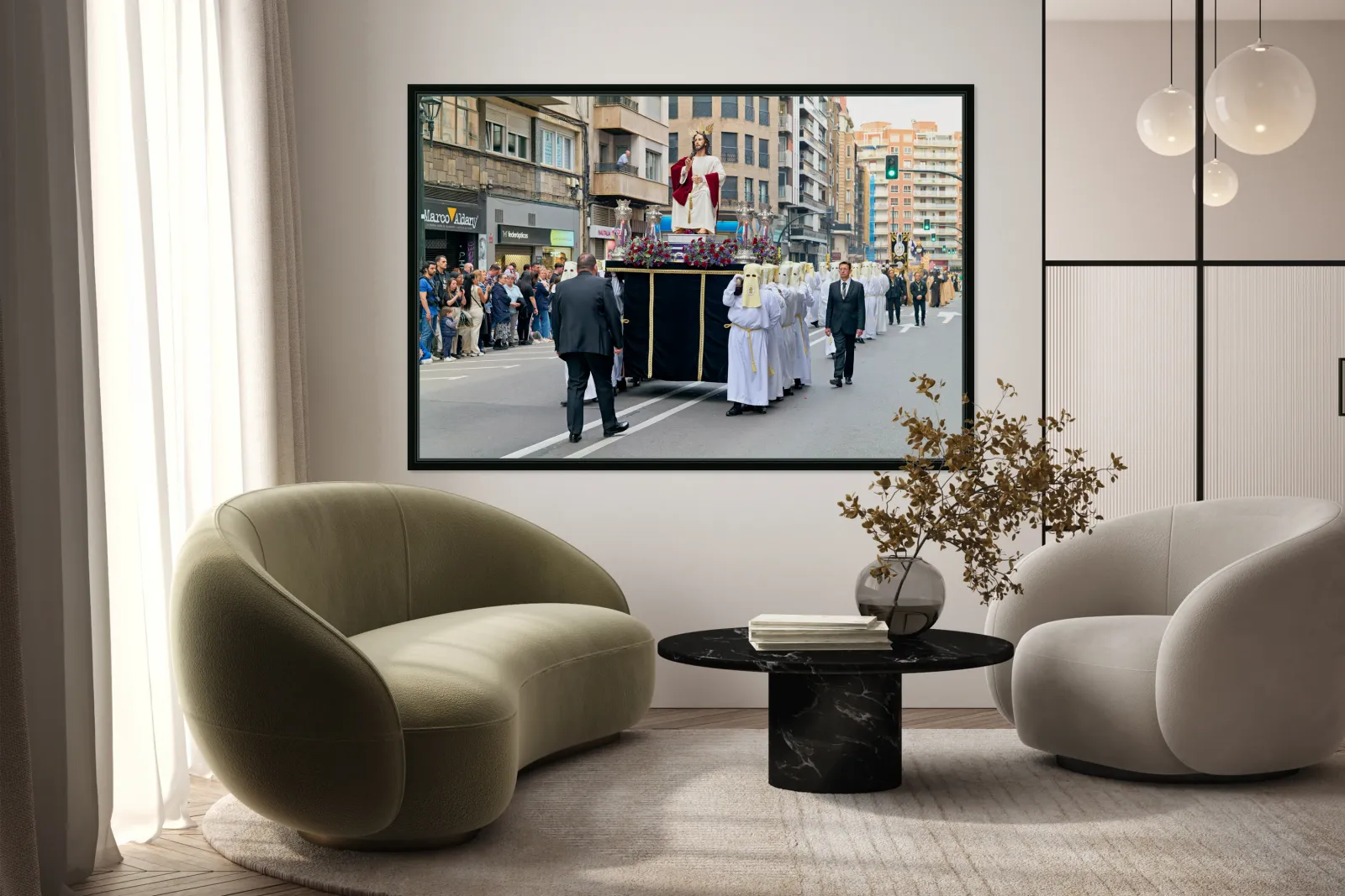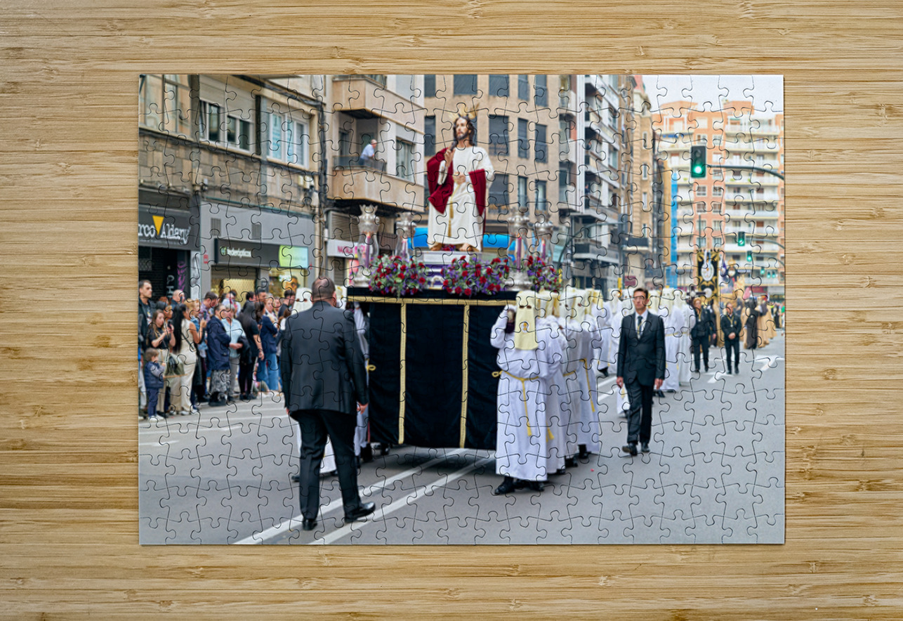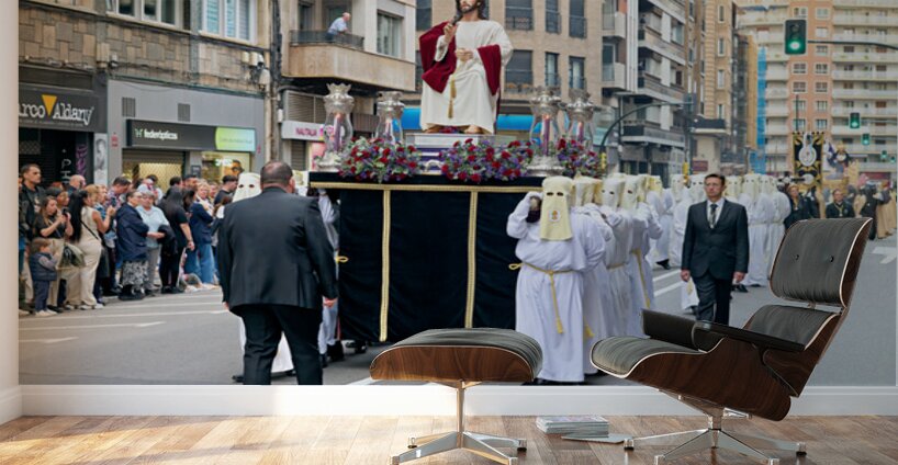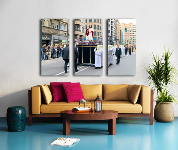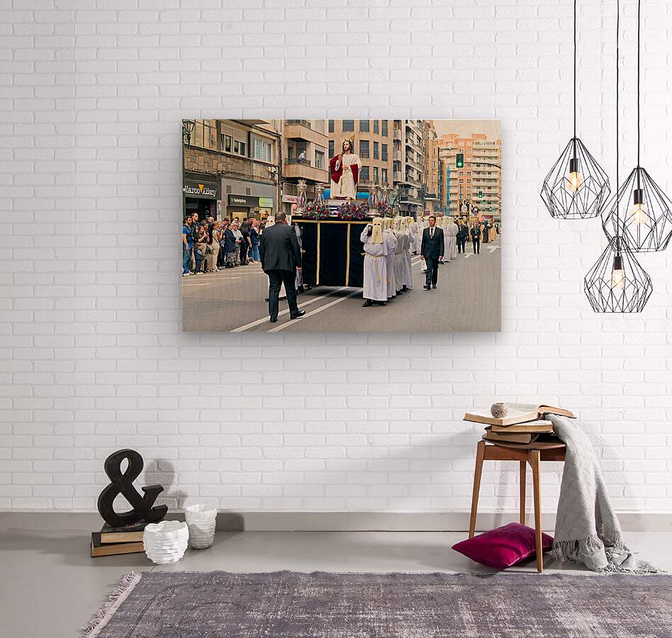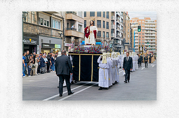 "Easter Holy Week procession in Zaragoza Spain" in a framed print.