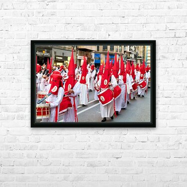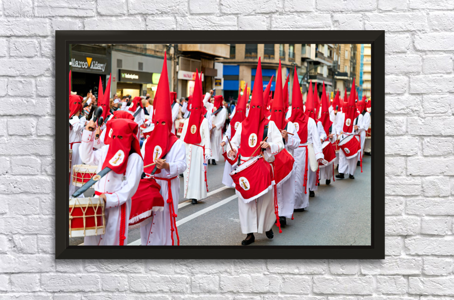 "Zaragozas Easter processions attract many visitors" in a framed print.