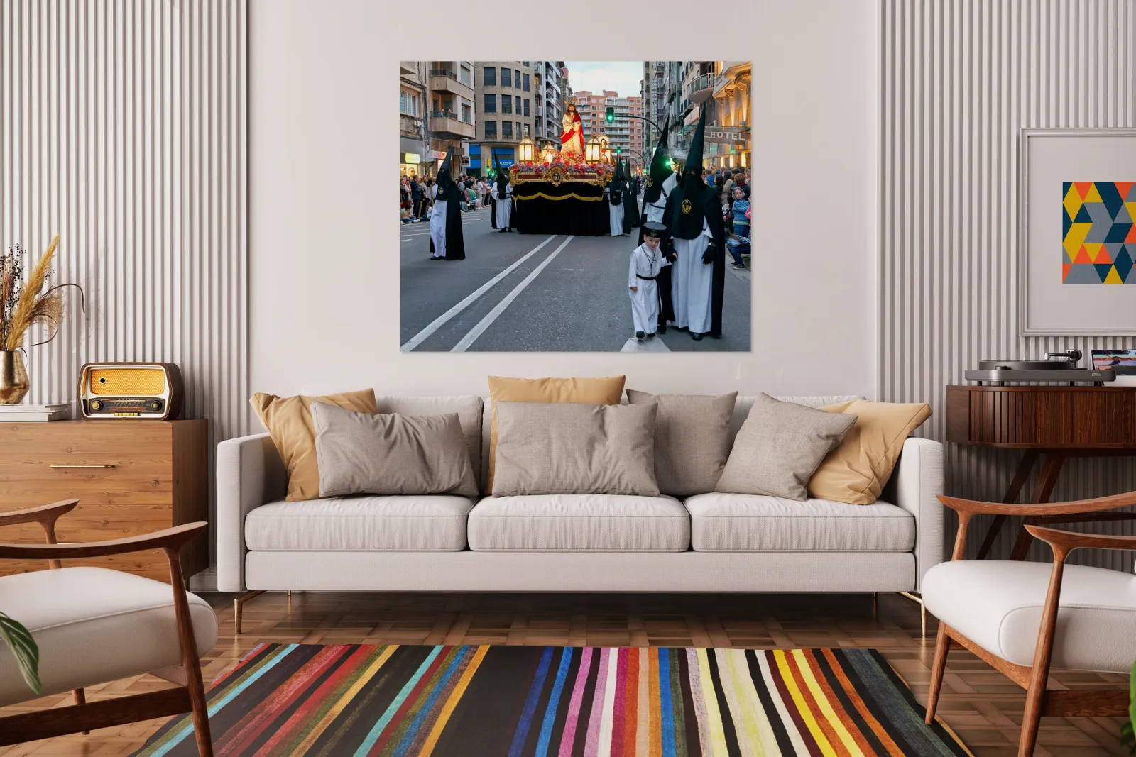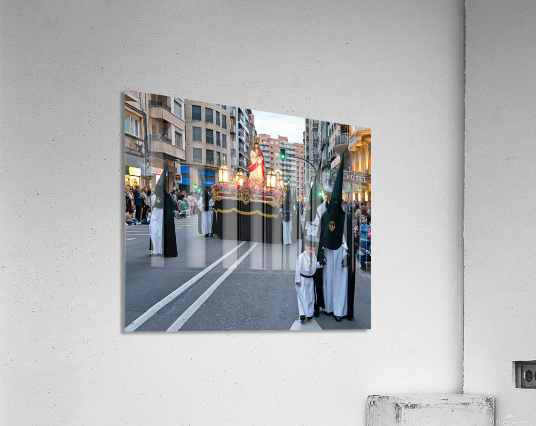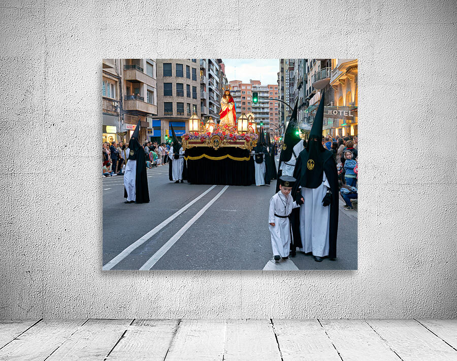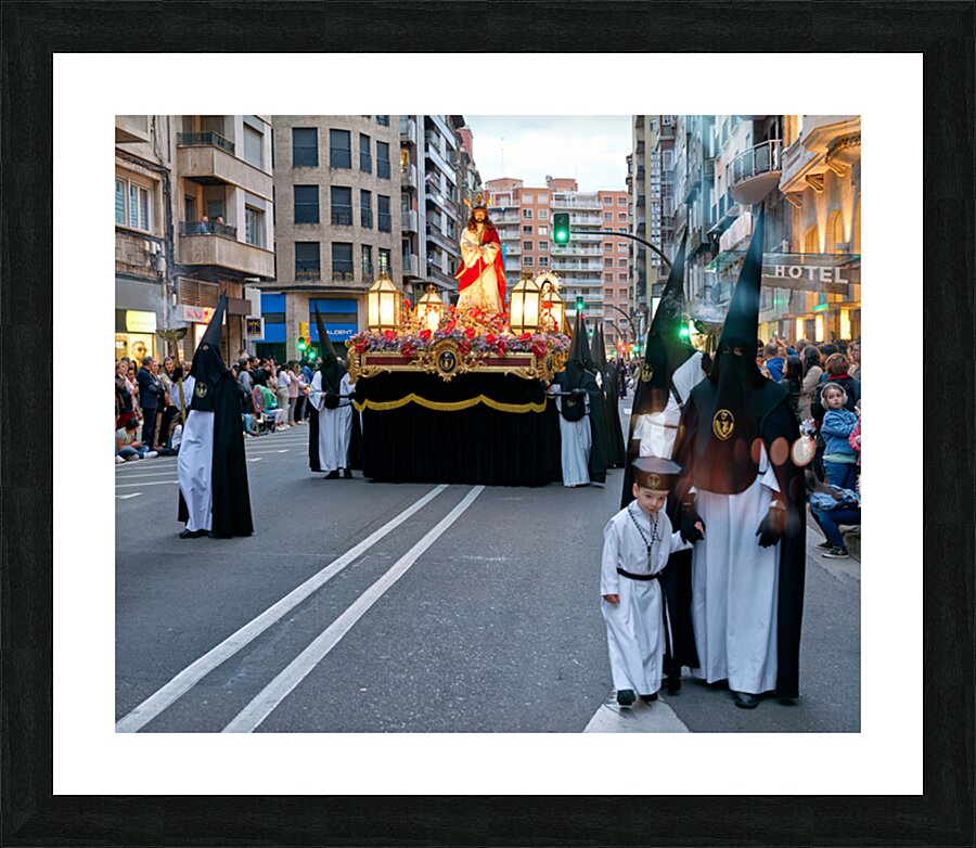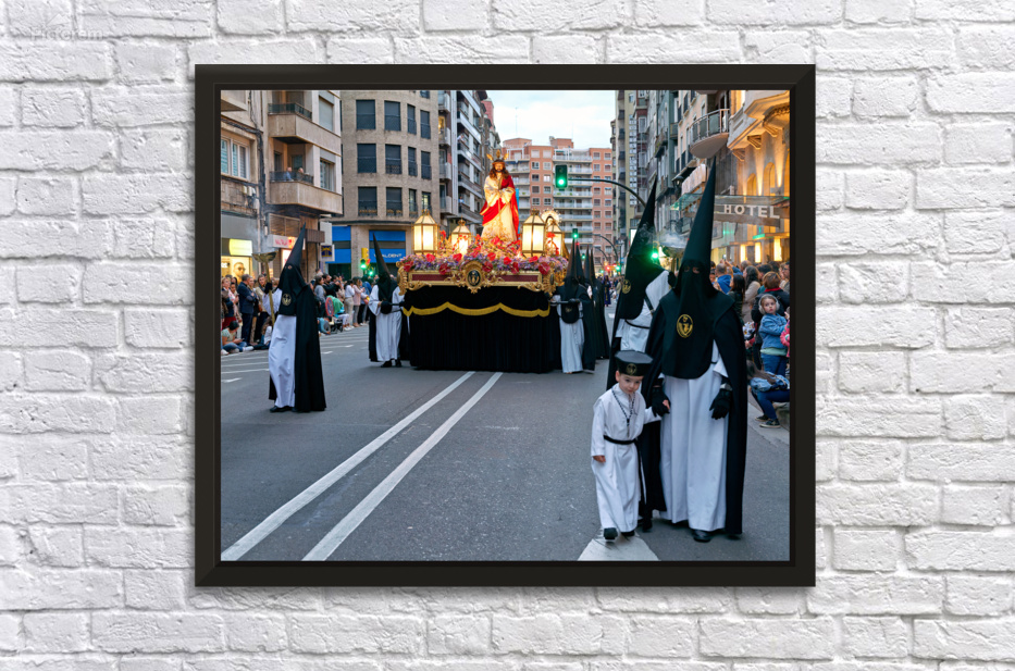 "Processions during Easter Holy Week in Zaragoza Spain" in a framed print.