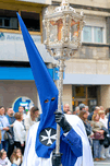 In Zaragoza people gather to watch the Easter Holy Week procession. Participants wear traditional costumes and hold lanterns as they march.