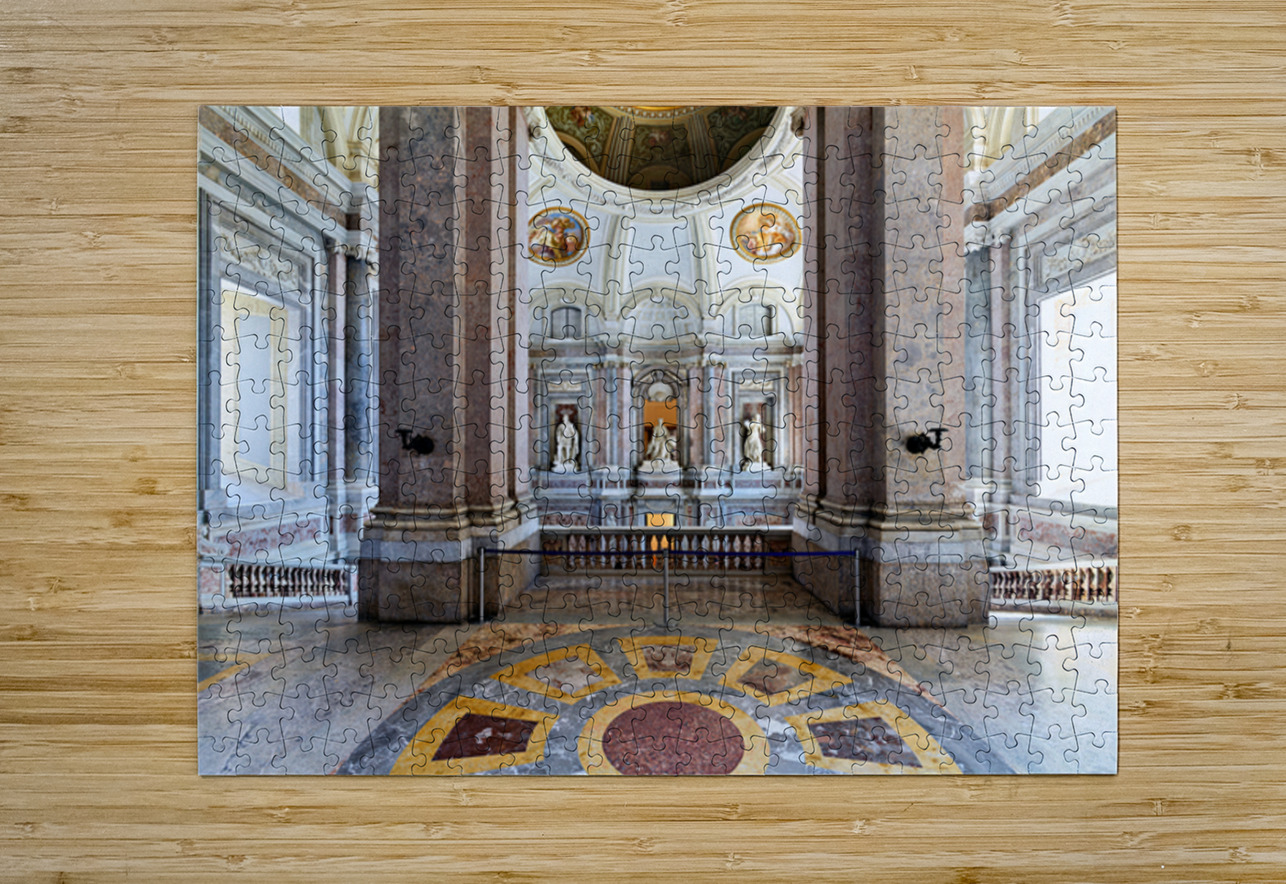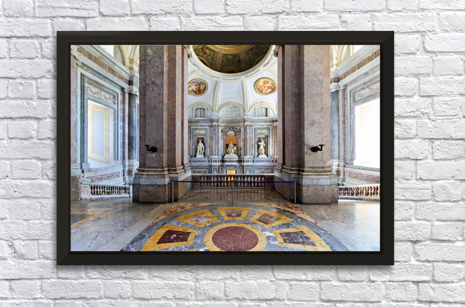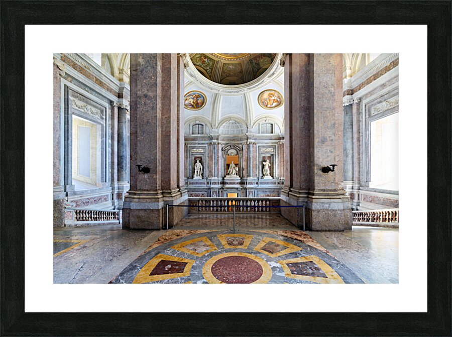 "Visit upper vestibule Royal Palace Caserta Italy" in a framed print.