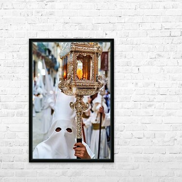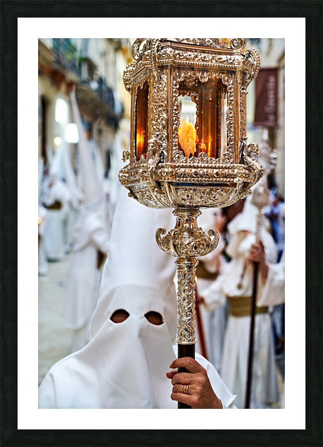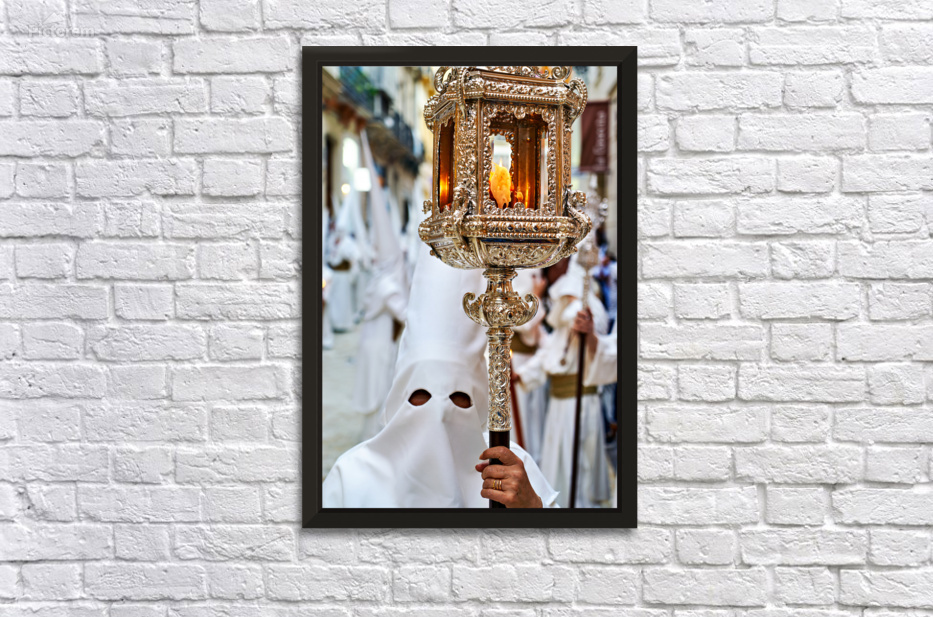 "Easter Holy Week processions in Malaga Andalusia Spain" in a framed print.