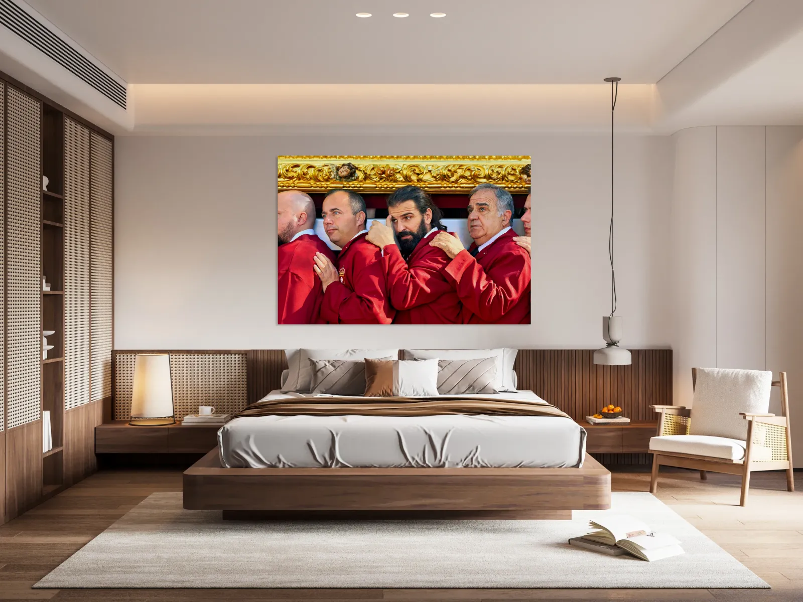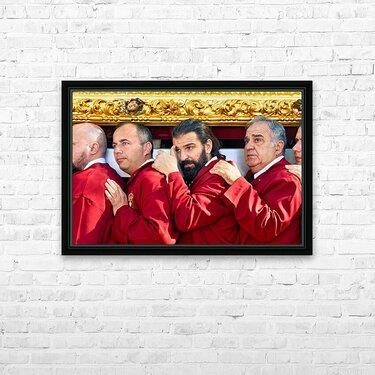 "Processions in Malaga during Easter Holy Week" in a framed print.