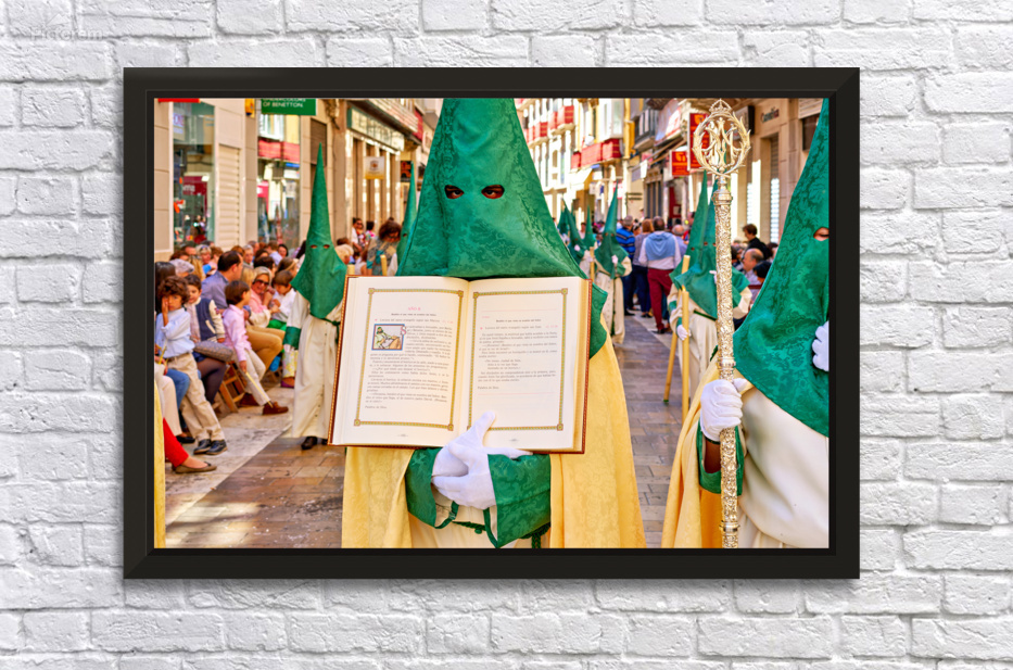 "Easter procession in Malaga during Holy Week" in a framed print.