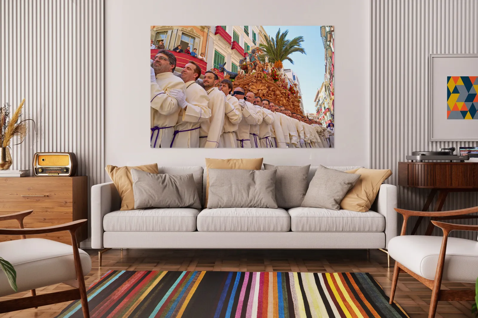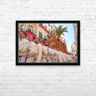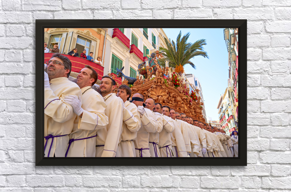"Procession in Malaga during Easter Holy Week" in a framed print.