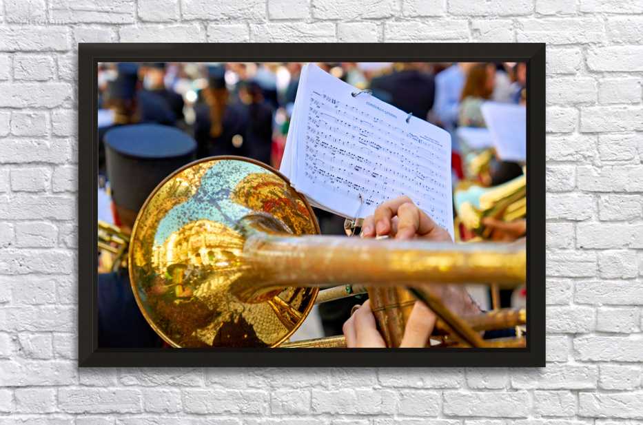 "Procession music during Easter in Malaga Andalusia" in a framed print.