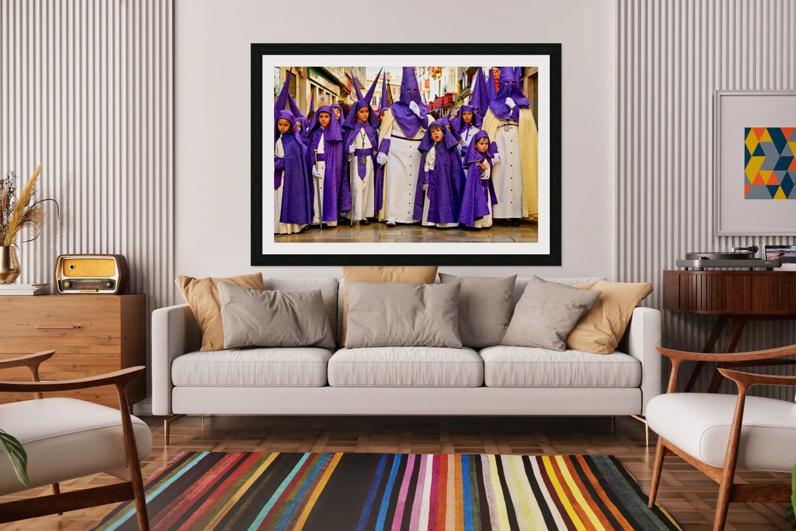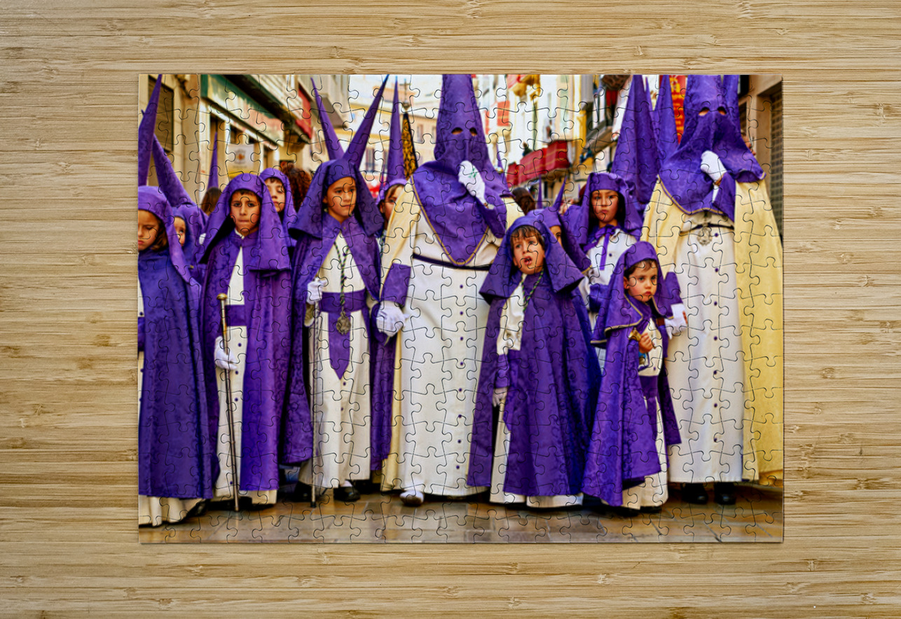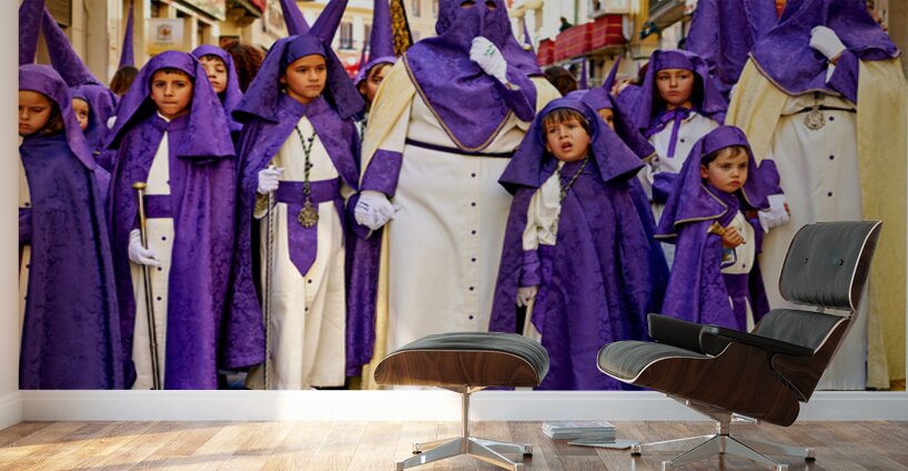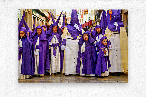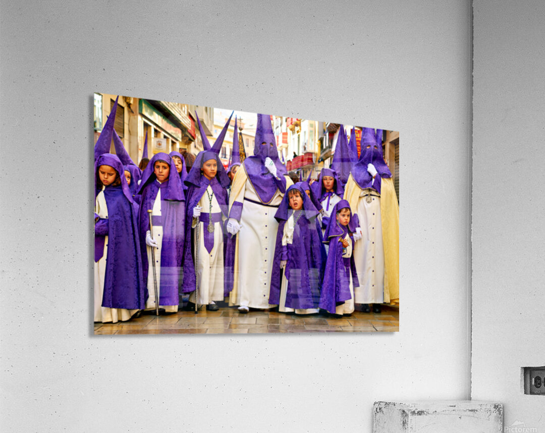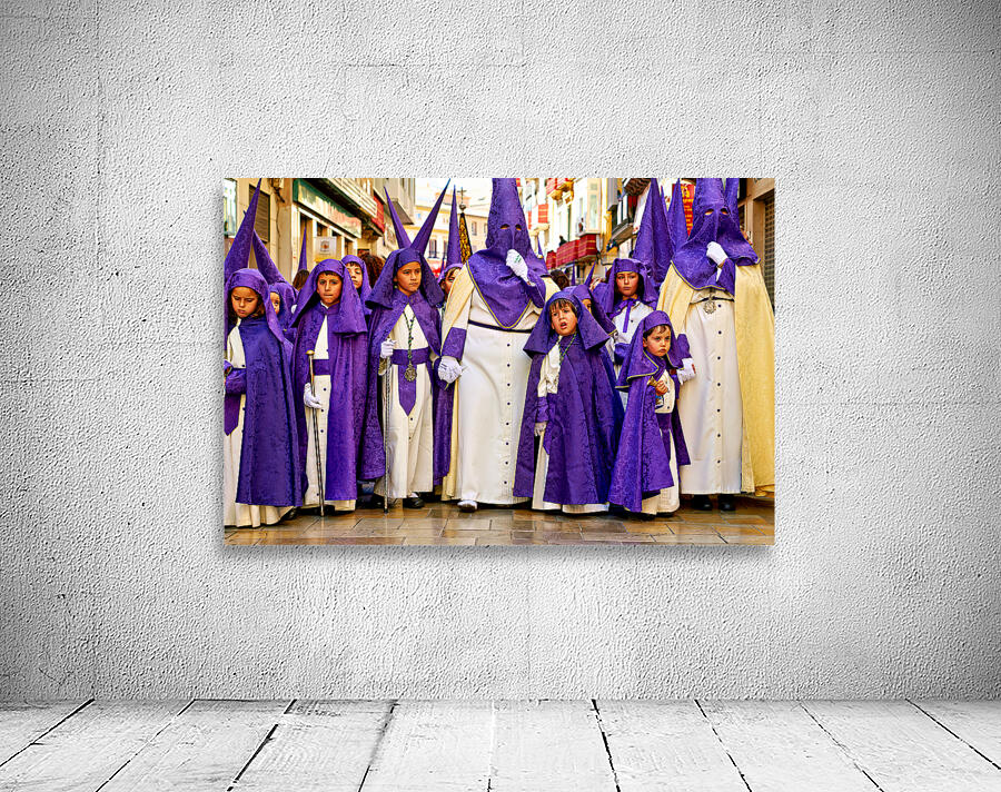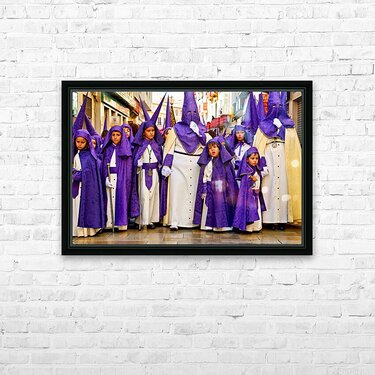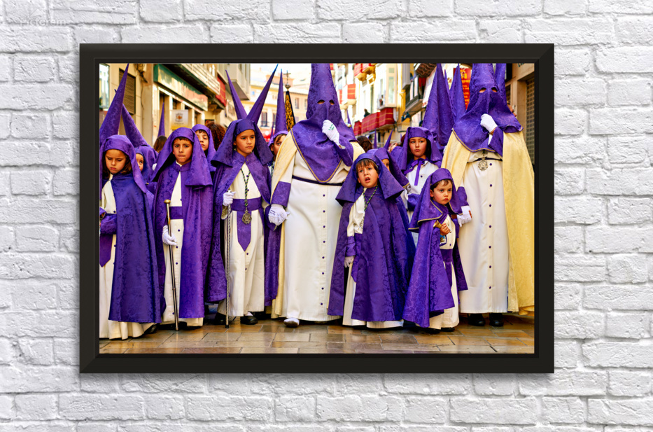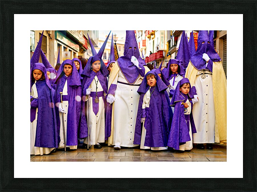 "Easter processions in Malaga Andalusia Spain" in a framed print.