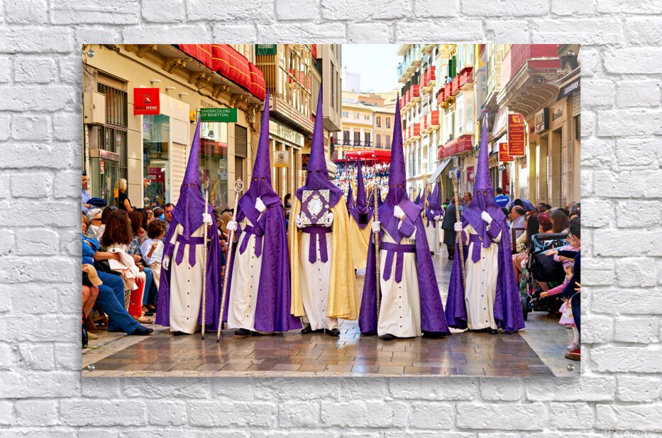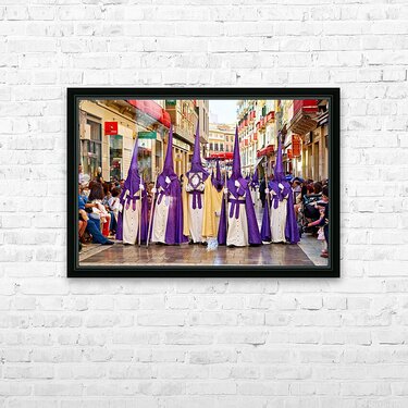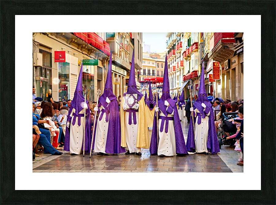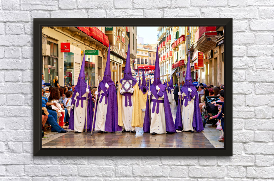 "Processions during Easter Holy Week in Malaga Spain" in a framed print.