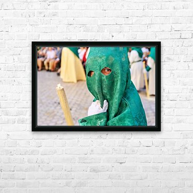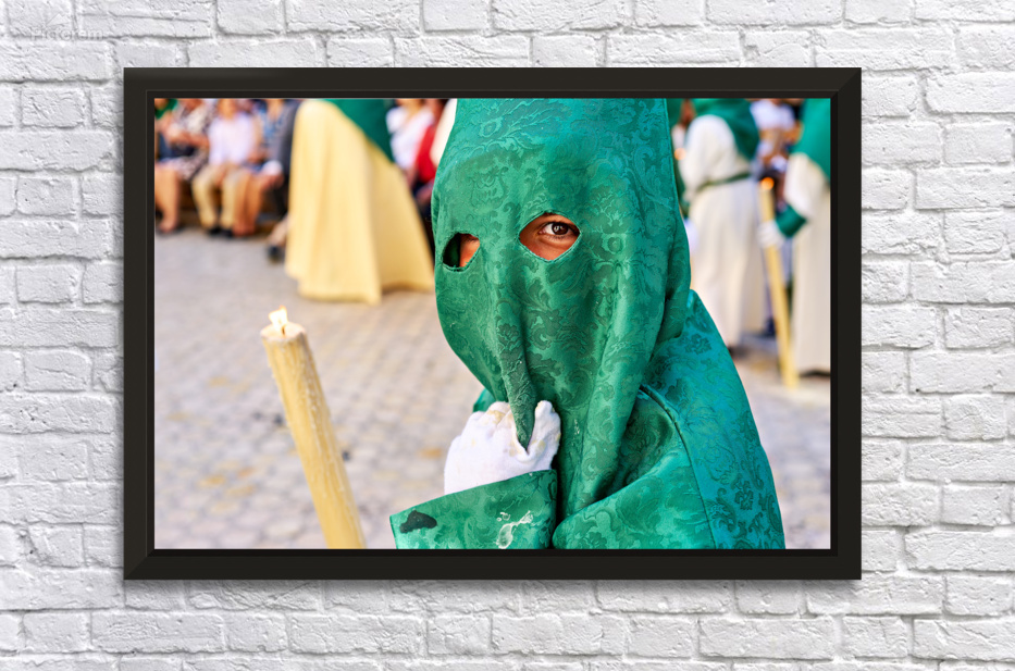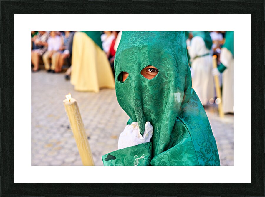 "Procession during Easter Holy Week in Malaga Spain" in a framed print.
