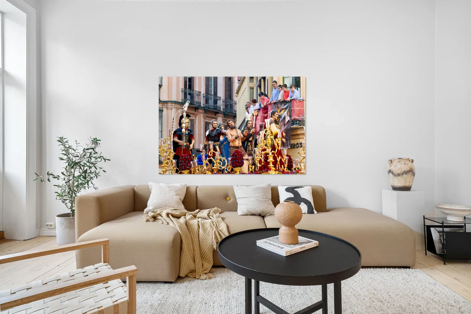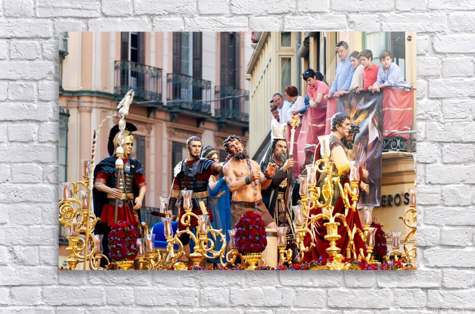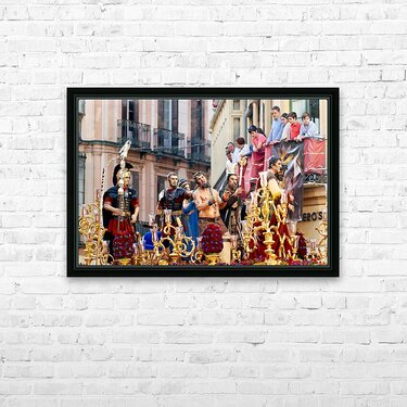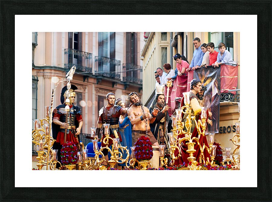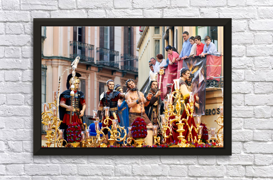 "Procession during Easter Holy Week in Malaga Spain" in a framed print.