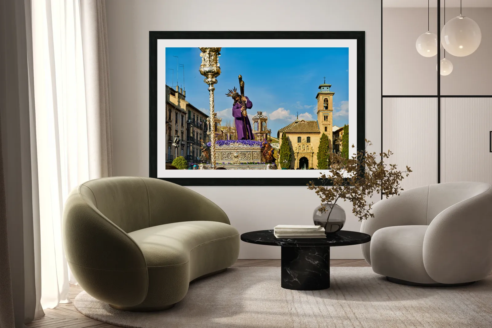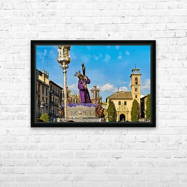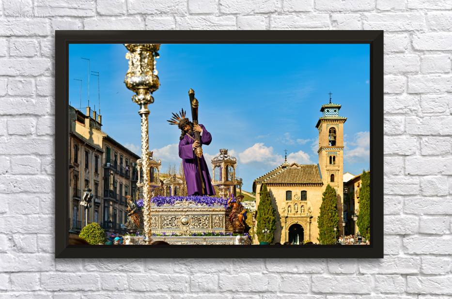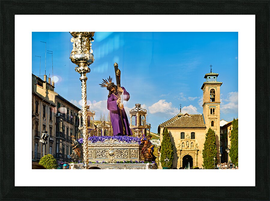 "Easter Holy Week processions in Granada Spain" in a framed print.