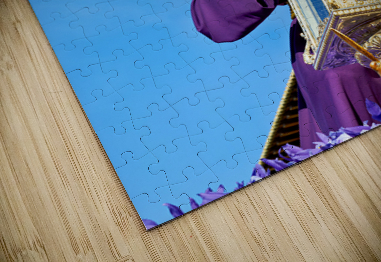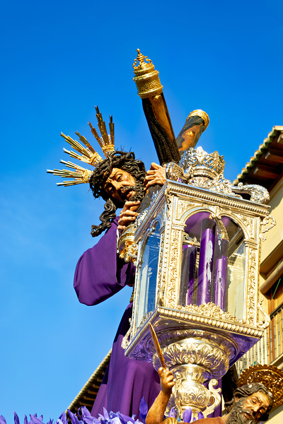 In Granada Spain a religious procession takes place for Holy Week. People carry symbols and religious figures through the streets.