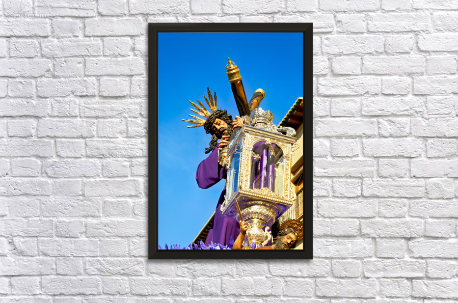 "Procession during Holy Week in Granada Spain" in a framed print.