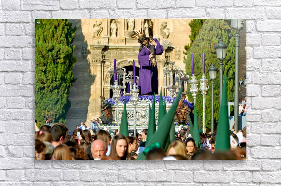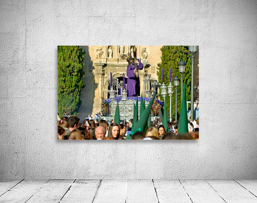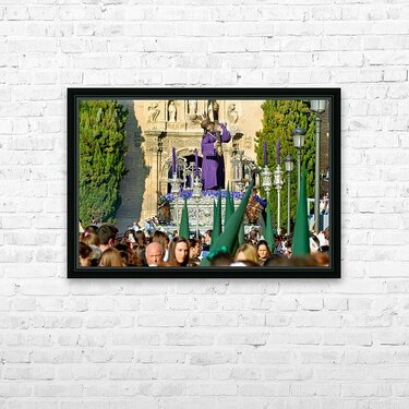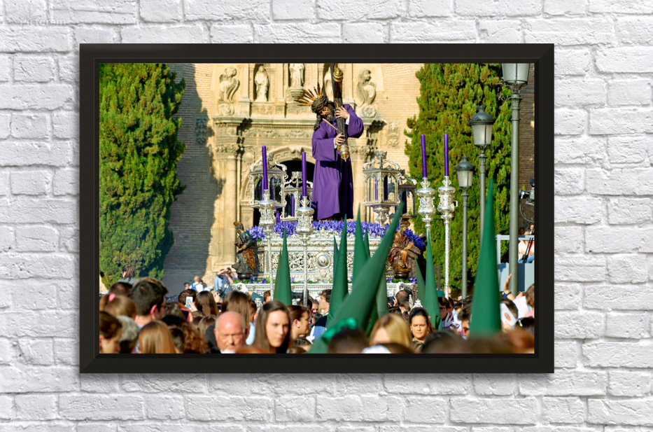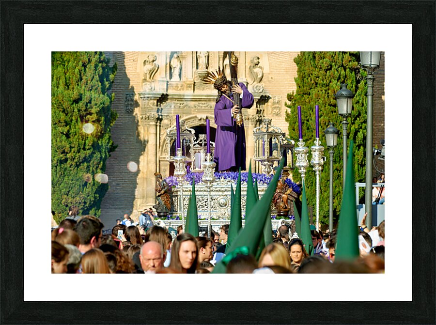 "Easter Holy Week procession in Granada Spain" in a framed print.