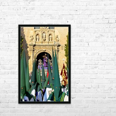 "Processions in Granada during Easter Holy Week events" in a framed print.