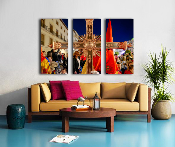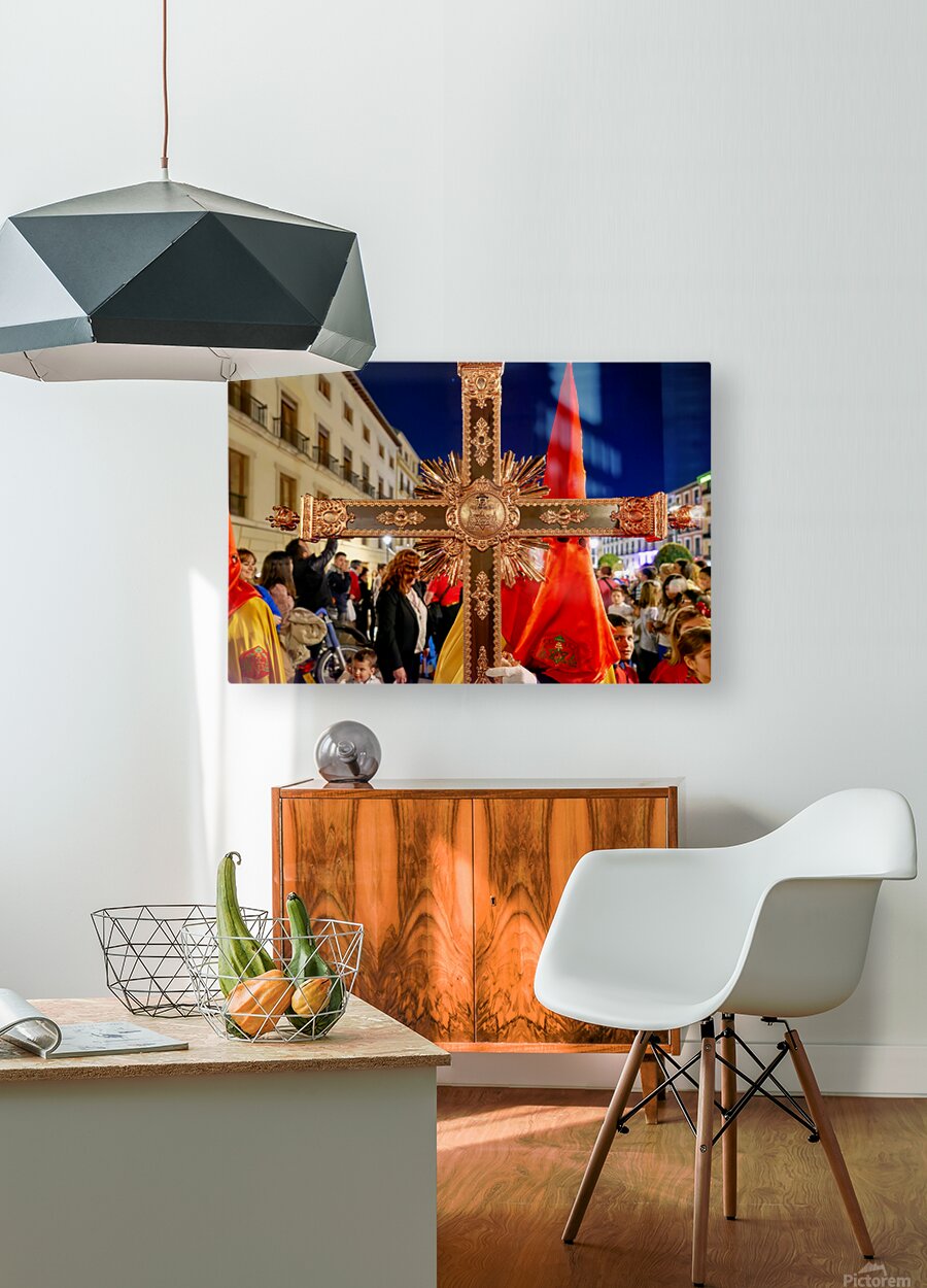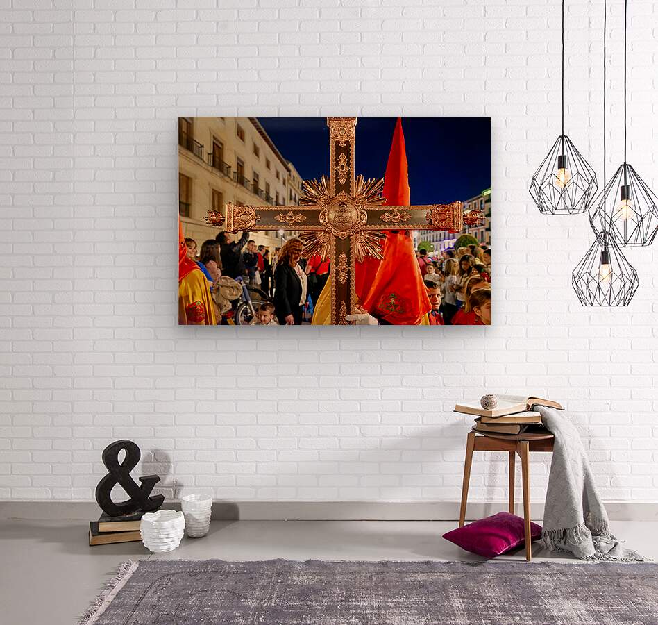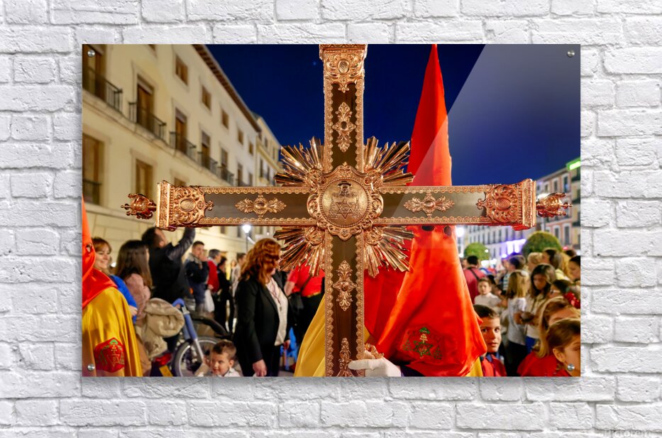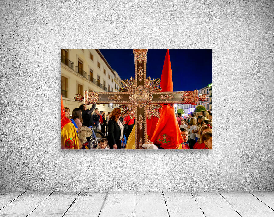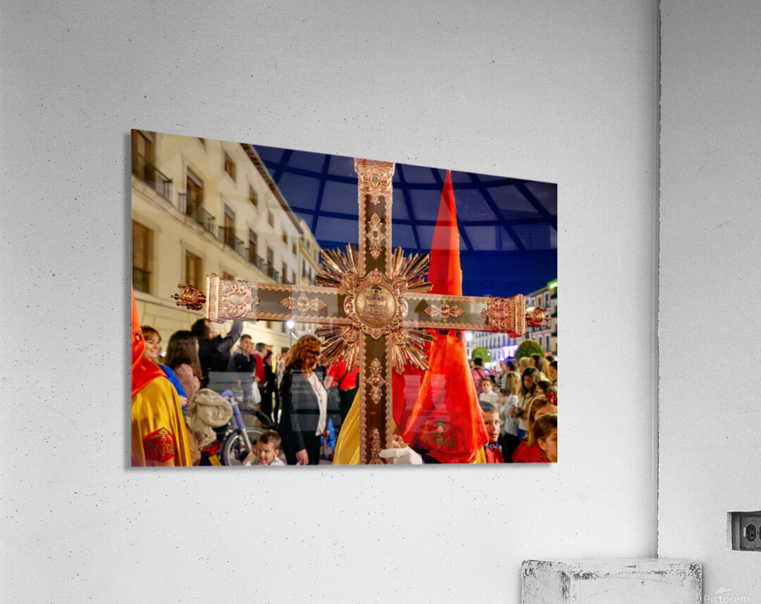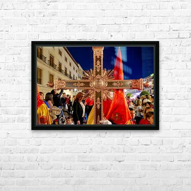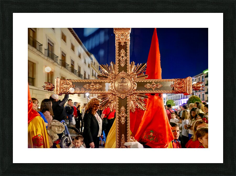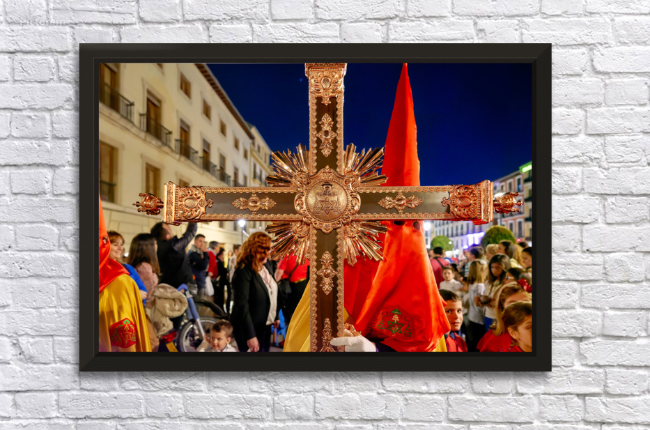 "Easter Holy Week procession in Granada Spain at night" in a framed print.
