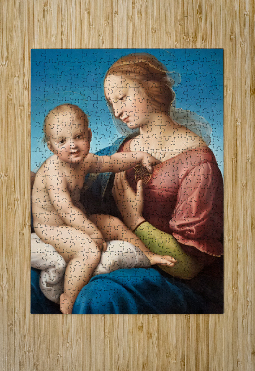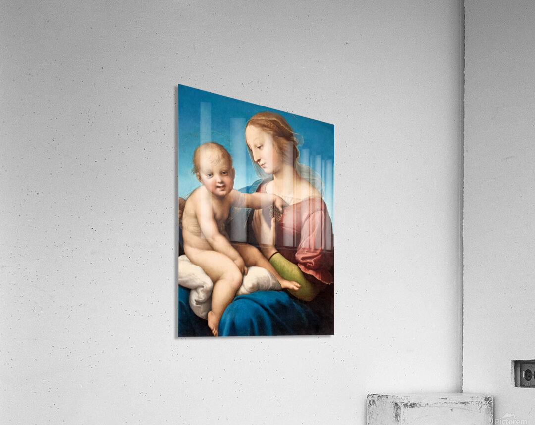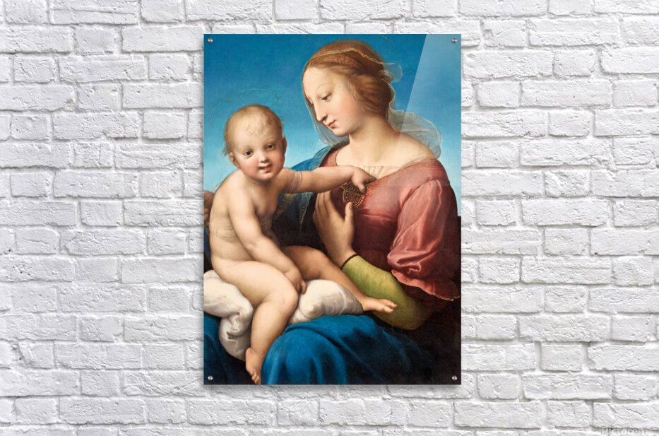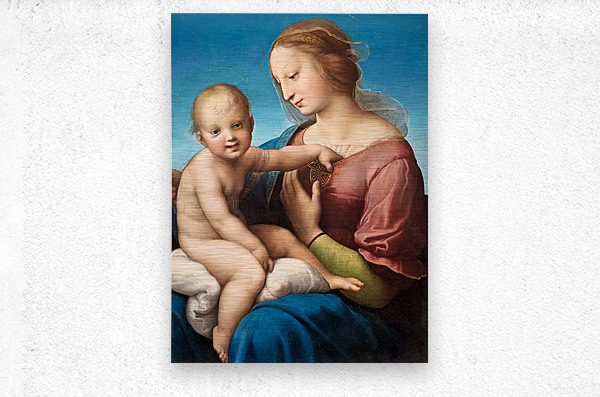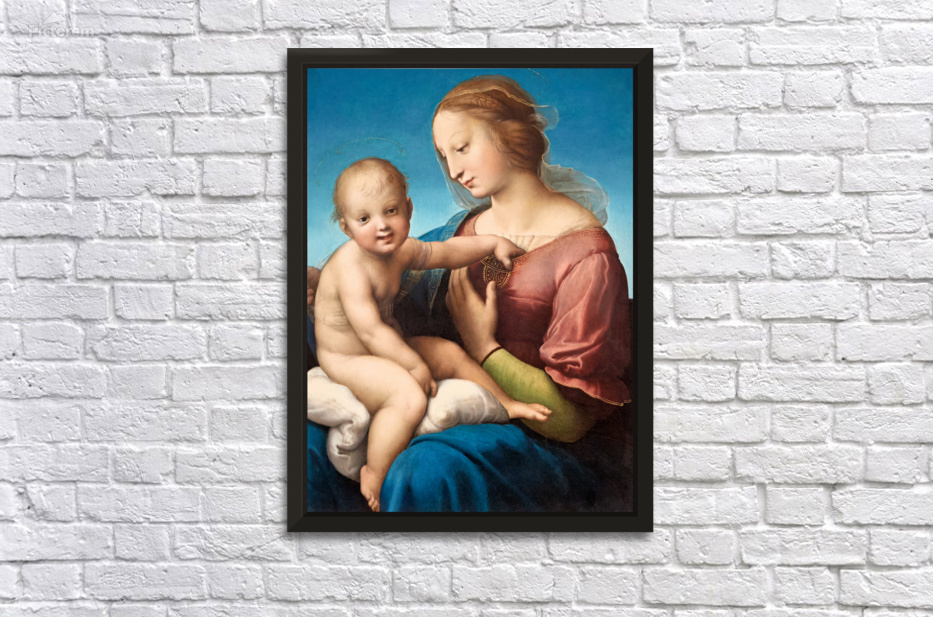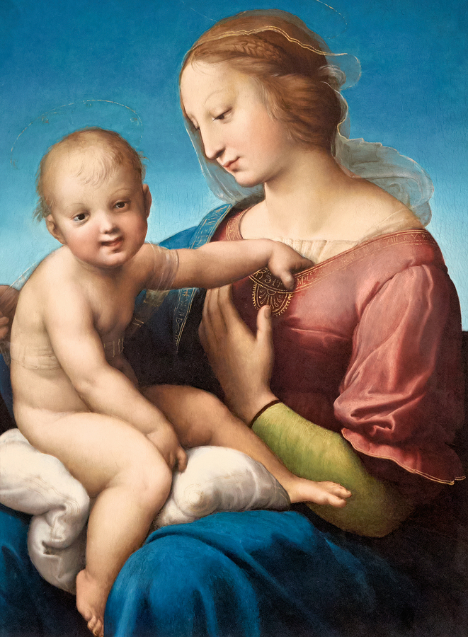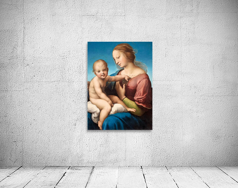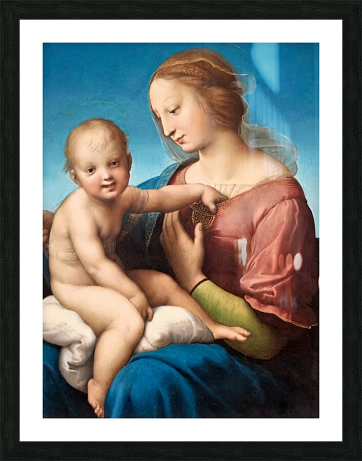 A depiction of Mary and baby Jesus by Raphael is in Washington DC. The painting shows their close bond and gentle expressions.