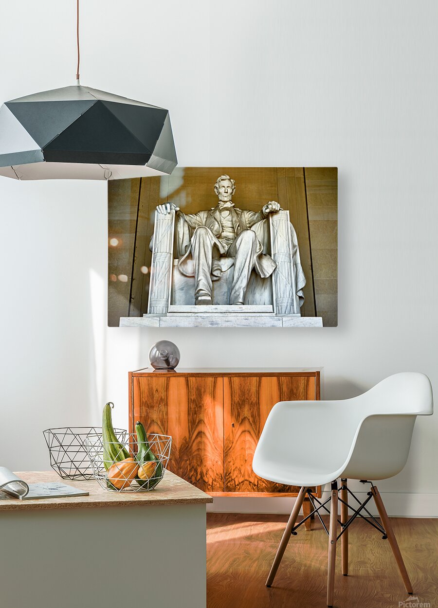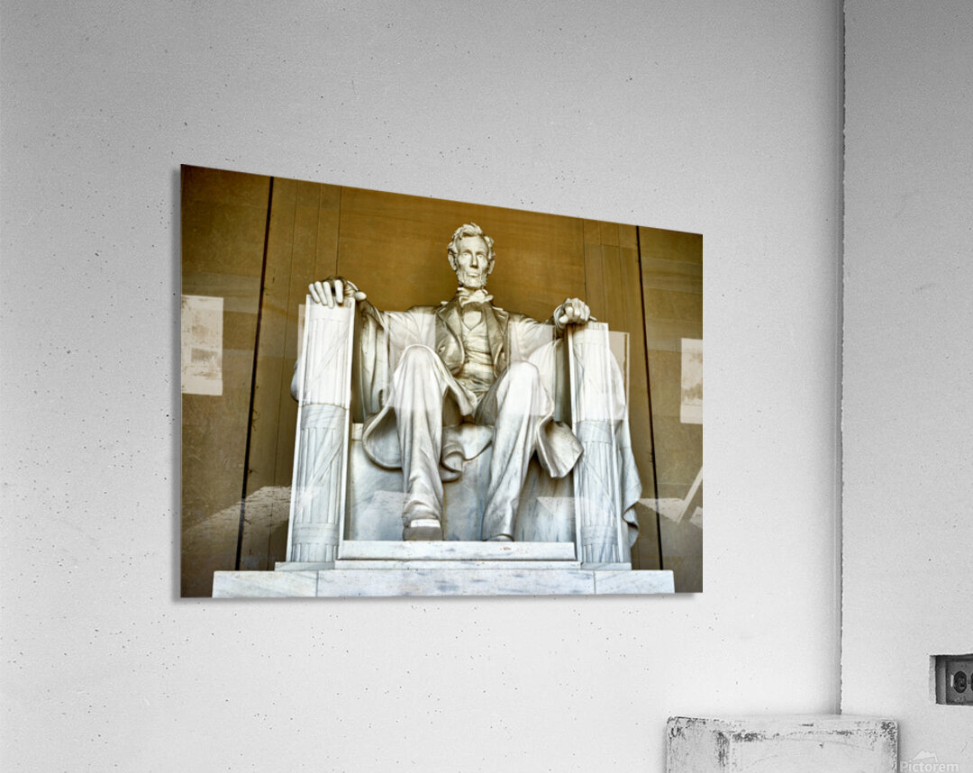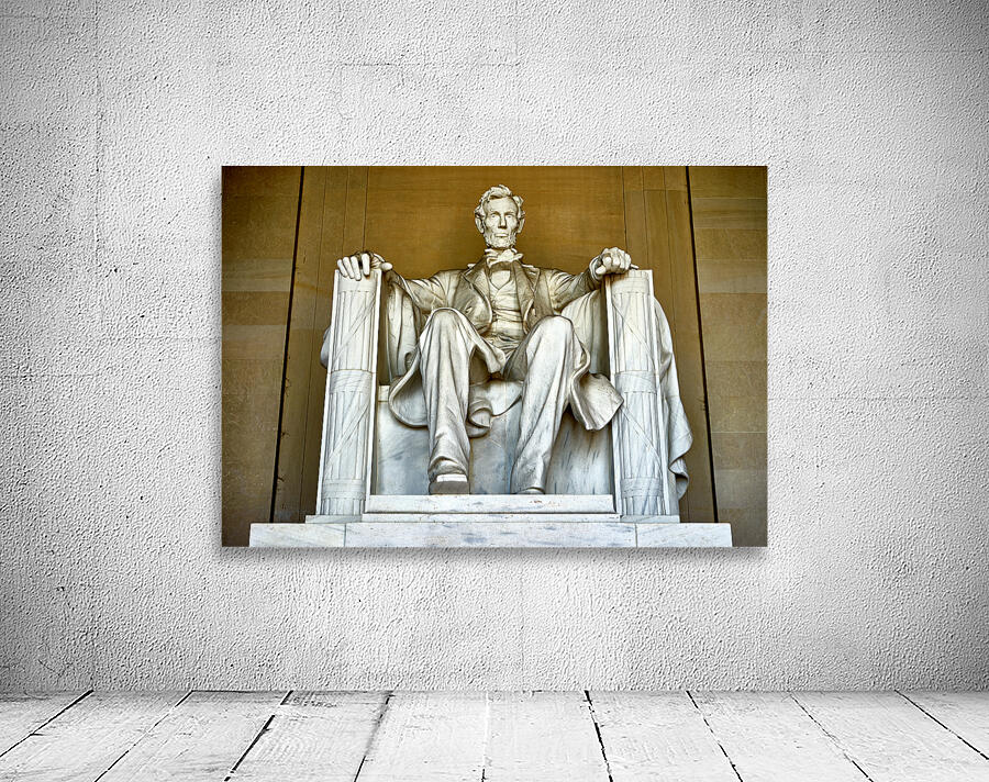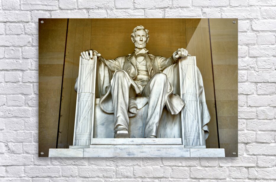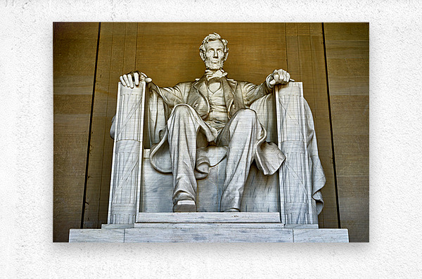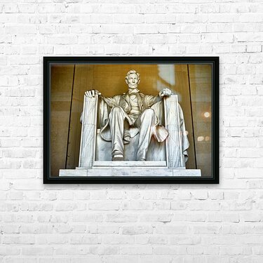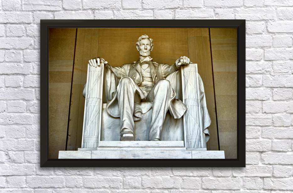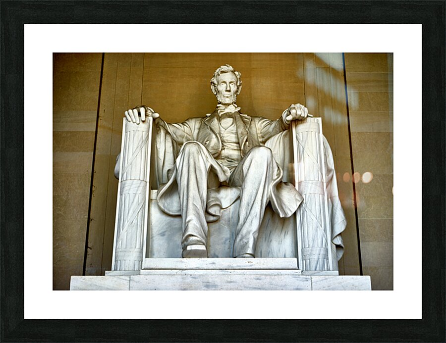 "Marble statue of Abraham Lincoln in Lincoln Memorial" in a framed print.
