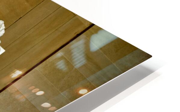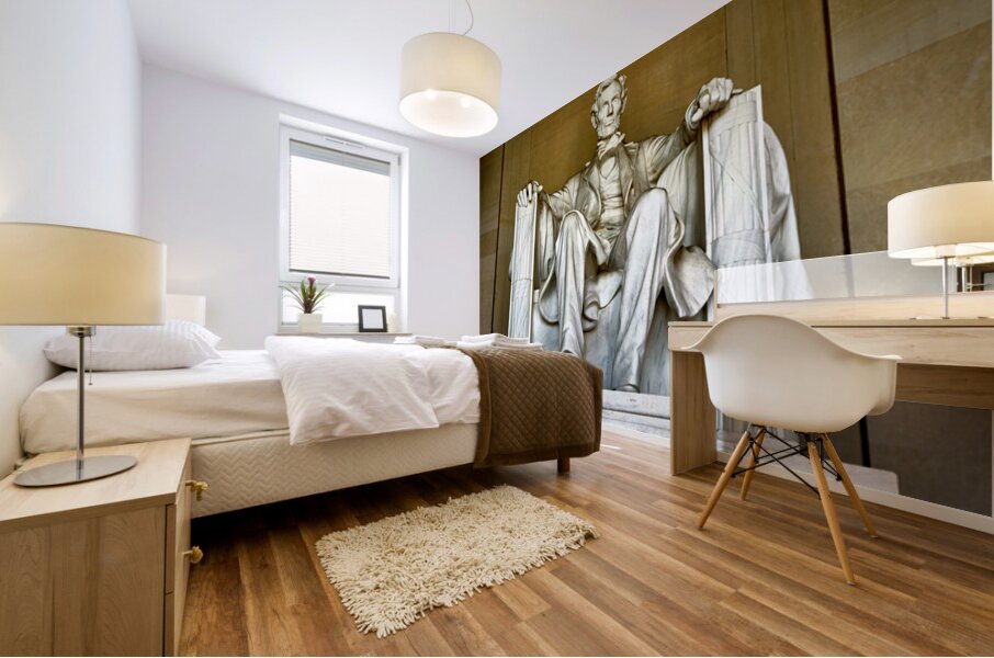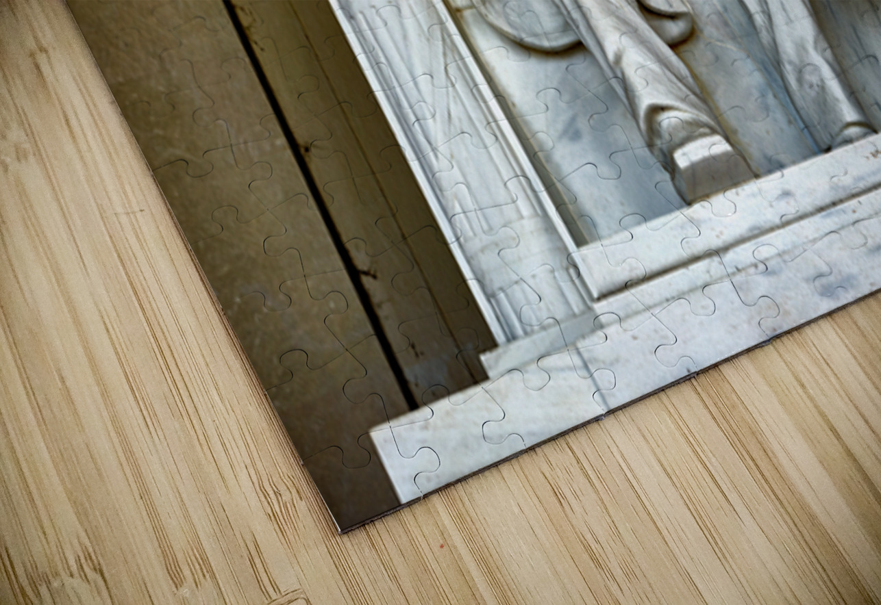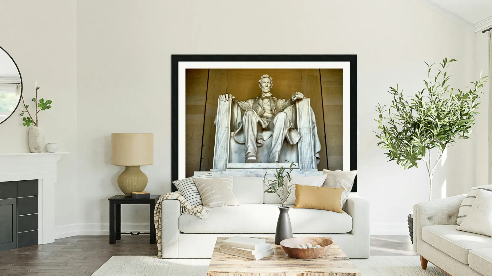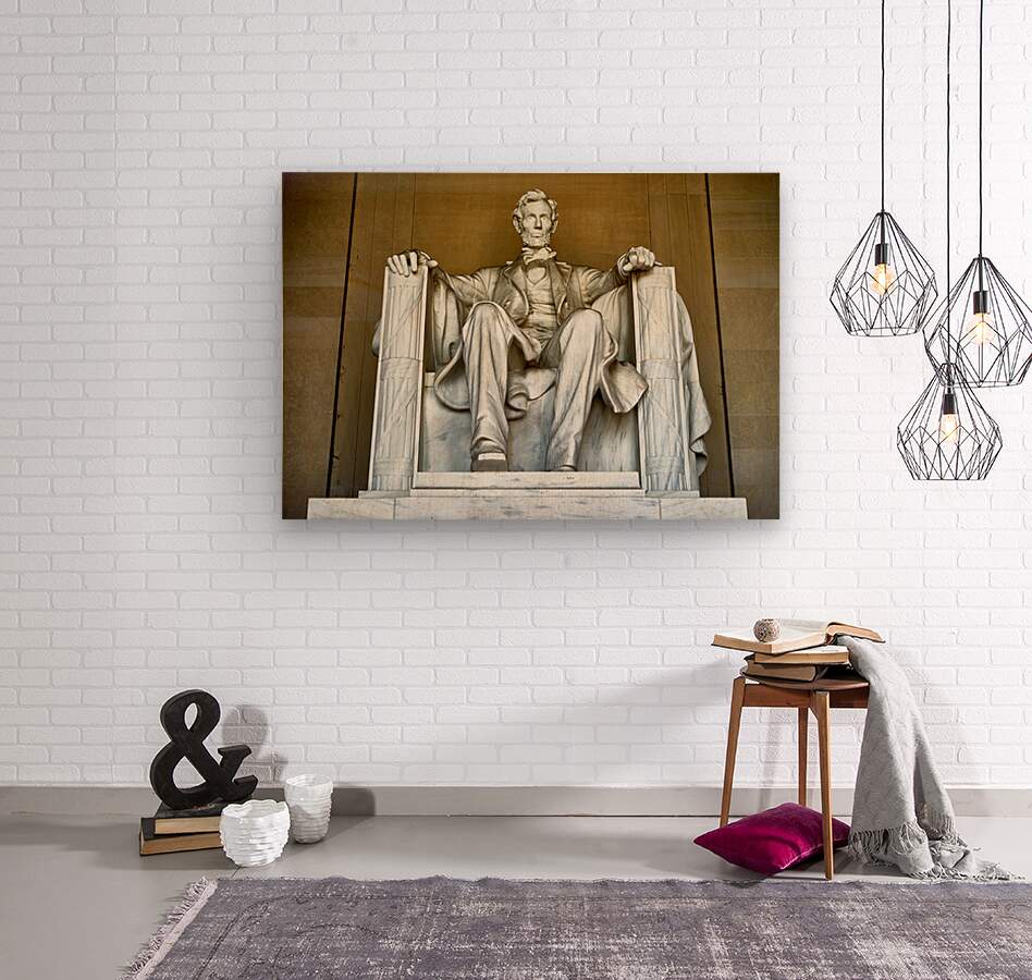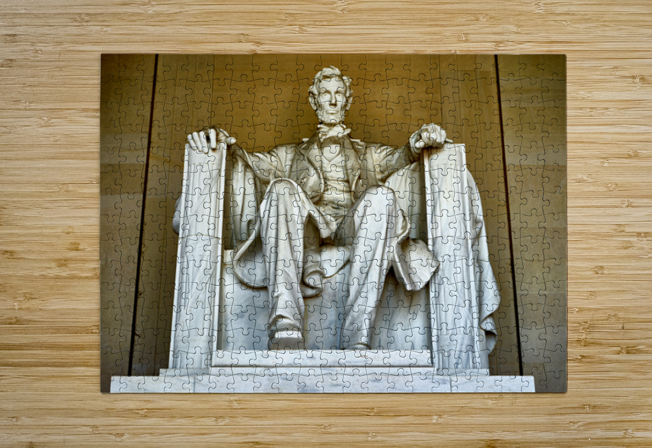 "Marble statue of Abraham Lincoln in Lincoln Memorial" in a framed print.