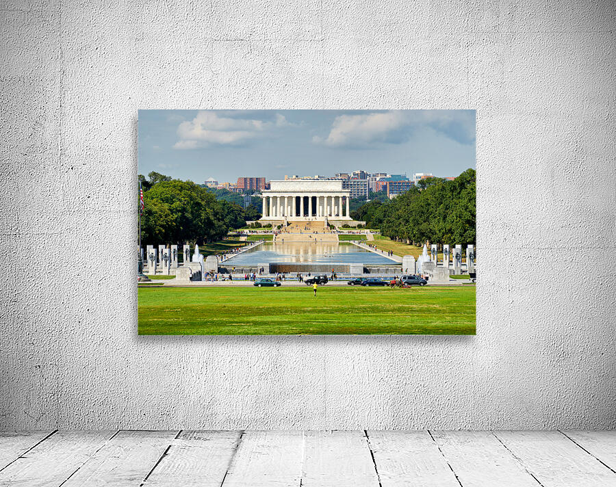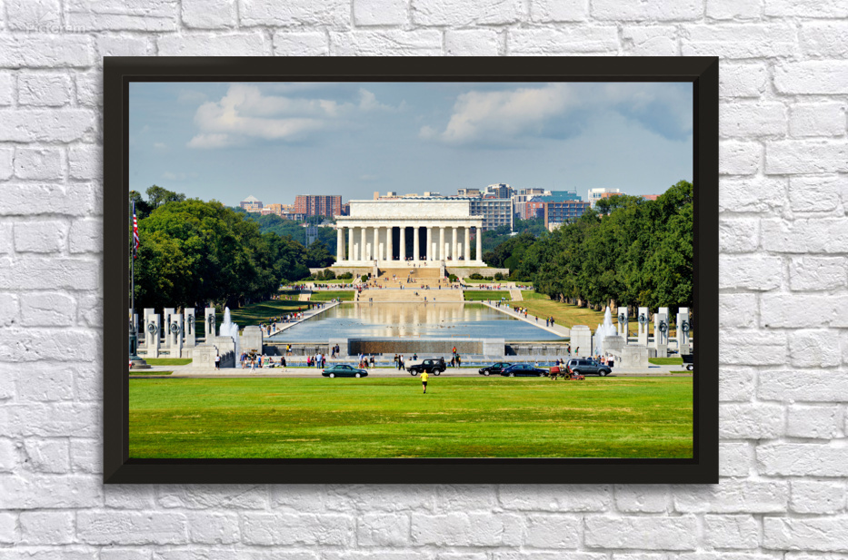 "Lincoln memorial from national mall in washington d.c" in a framed print.